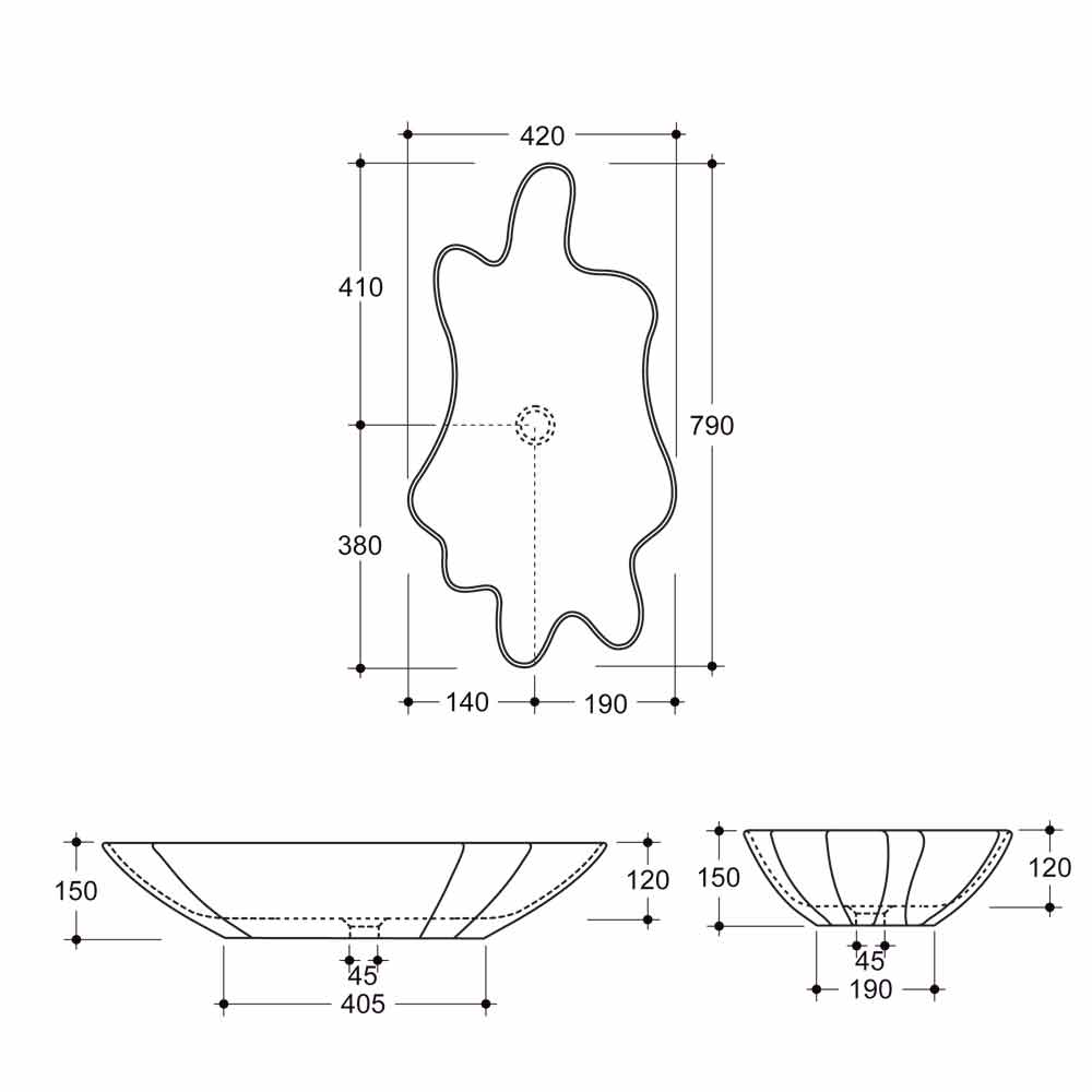حوض غسيل يذكرنا بالبحر من خلال فتحة تصريفه على شكل لؤلؤة، مما يخلق الوهم بأنه محارة.