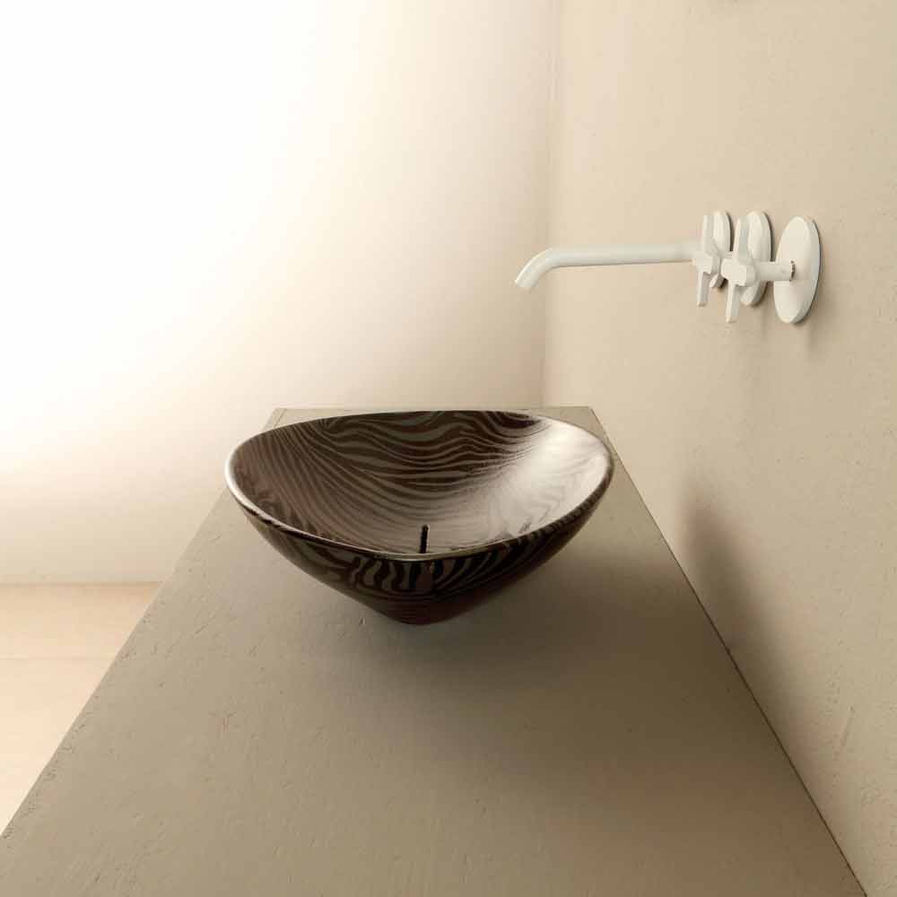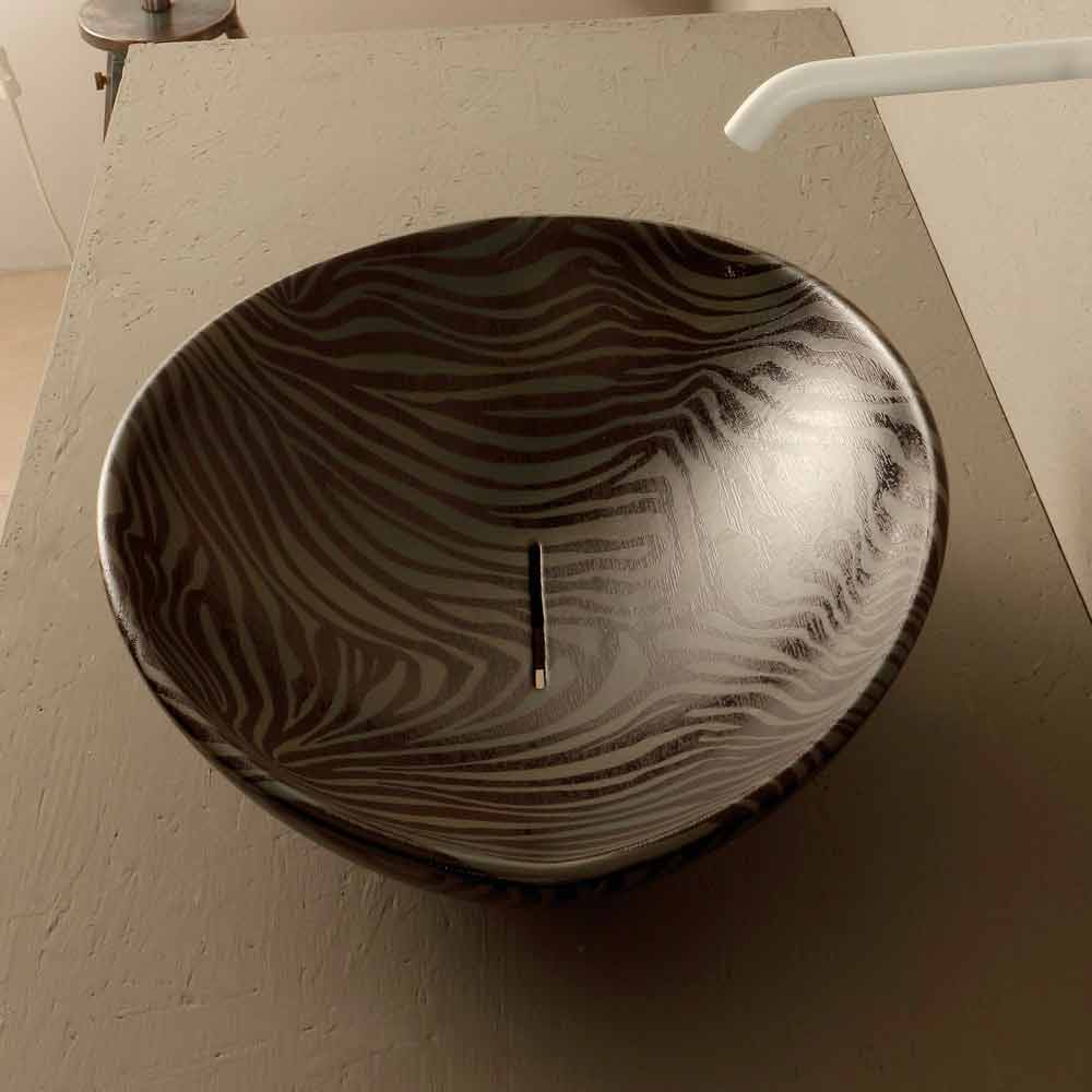 حوض غسيل بتصميم حمار وحشي أسود مصنوع في إيطاليا بنقشة حيوانات حوض غسيل أو "حوض" ذو شكل غير منتظم، يشبه قسم اللوز، ومجهز بتصريف مياه مستمر. يمكن تخصيص حوض الغسيل هذا عن طريق الاختيار بين التشطيبات والديكورات المختلفة: لطلب معلومات و / أو عرض أسعار شخصي، اكتب إلى clienti@viadurini.it.