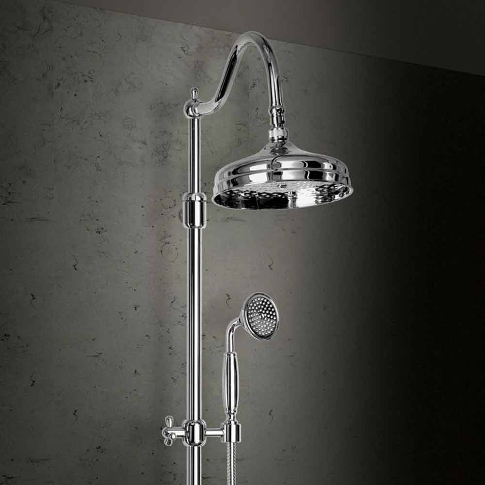 عمود دش بتصميم كلاسيكي من النحاس مع رأس دش ودش يدوي، منتج جيد صنع في إيطاليا.