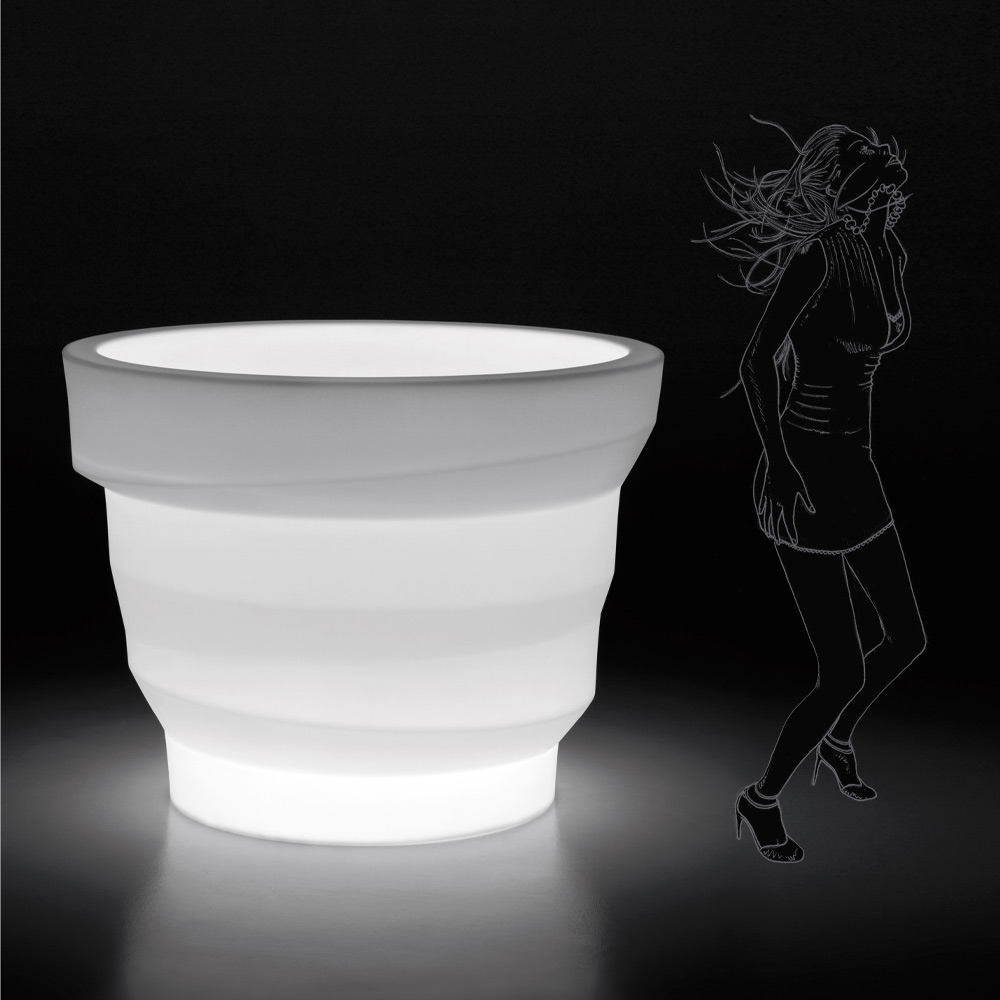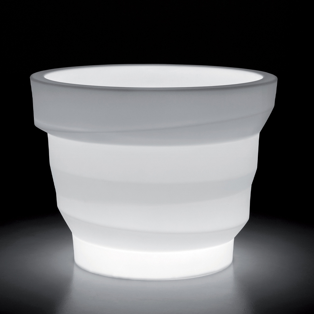 مزهرية مضيئة خارجية مصنوعة من البولي إيثيلين غير الشفاف مع إضاءة LED، صنع في إيطاليا.