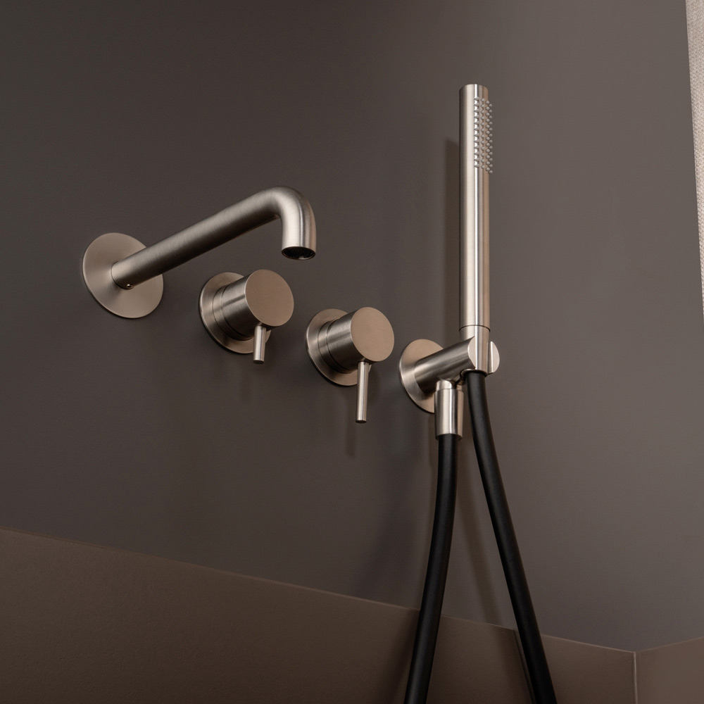 خلاط حمام مدمج مع ذراع تحويل وصنبور، مع طقم دش بأربع فتحات، صنع في إيطاليا