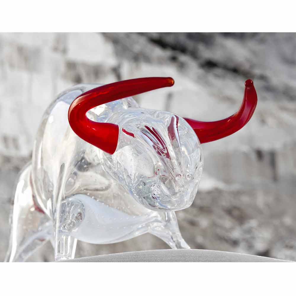 تمثال على شكل ثور من الزجاج الملون صنع في إيطاليا، عالي الجودة.