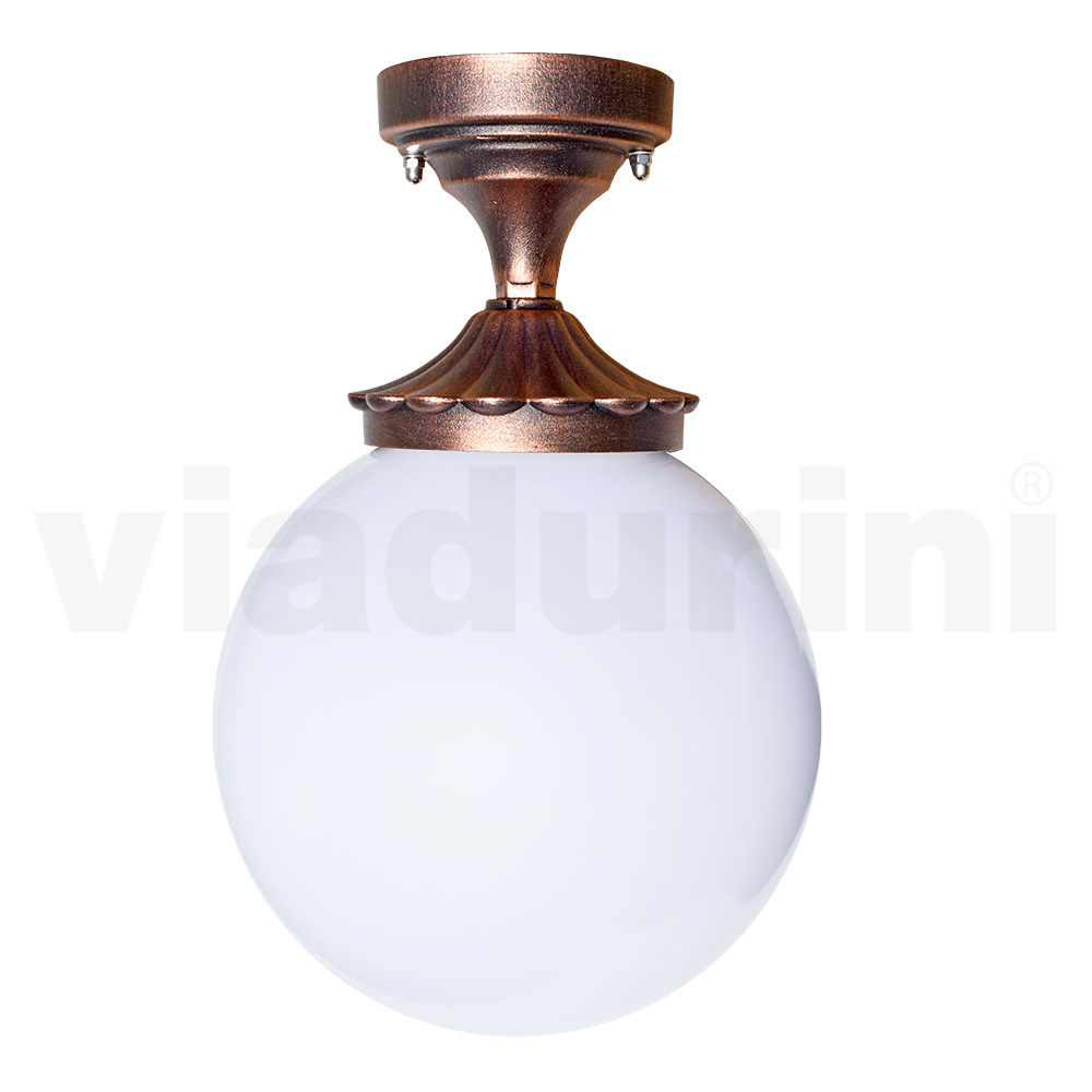 مصباح حديقة مصنوع من هيكل من الألومنيوم المصبوب وموزع كروي من الأكريليك الأوبال ، صنع بالكامل في إيطاليا.