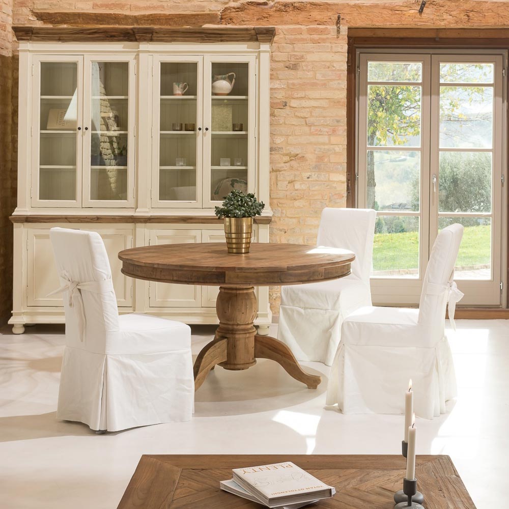 كرسي داخلي بإطار خشبي وبطانة من إسفنج البولي يوريثان وغطاء قابل للإزالة مصنوع من القطن بنسبة 100% باللون الأبيض مع فيونكة .