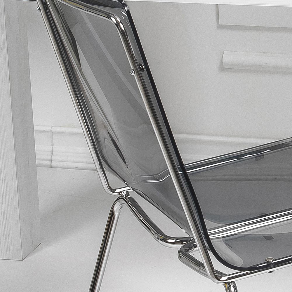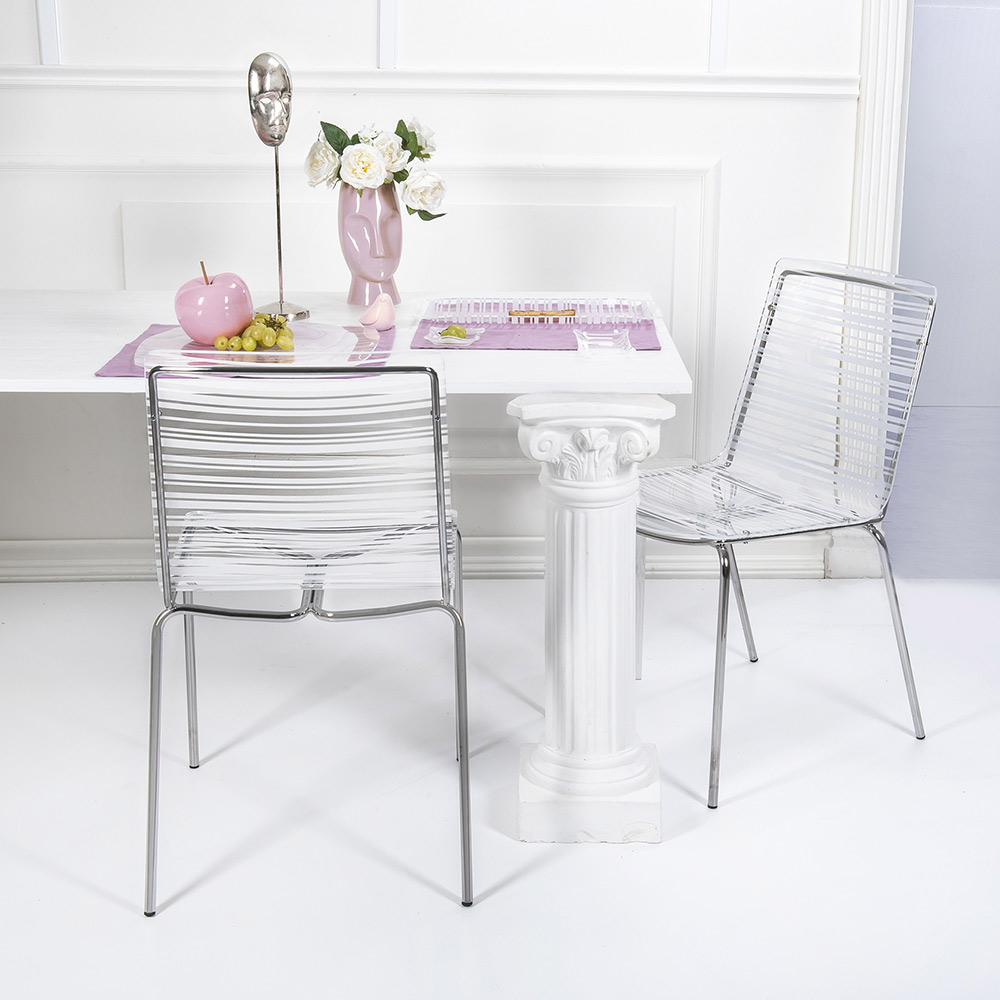 كرسي طعام مصنوع بالكامل في إيطاليا ، بهيكل من زجاج شبكي وأرجل من الحديد المطلي بالكروم ، مما يجعله سهل التكديس. يتميز بتصميم بسيط وأنيق ، وهو قطعة أثاث متعددة الاستخدامات وعصرية بفضل المواد المبتكرة المستخدمة التي تُبرز أناقته الهندسية .