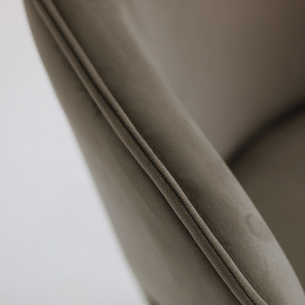 المقعد والظهر: مخمل المنك V15 والأرجل: من خشب الدردار مع لمسة نهائية من خشب الجوز كاناليتو