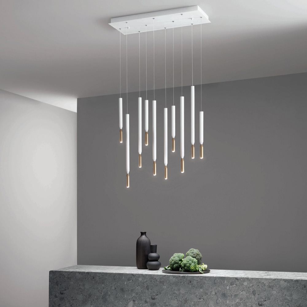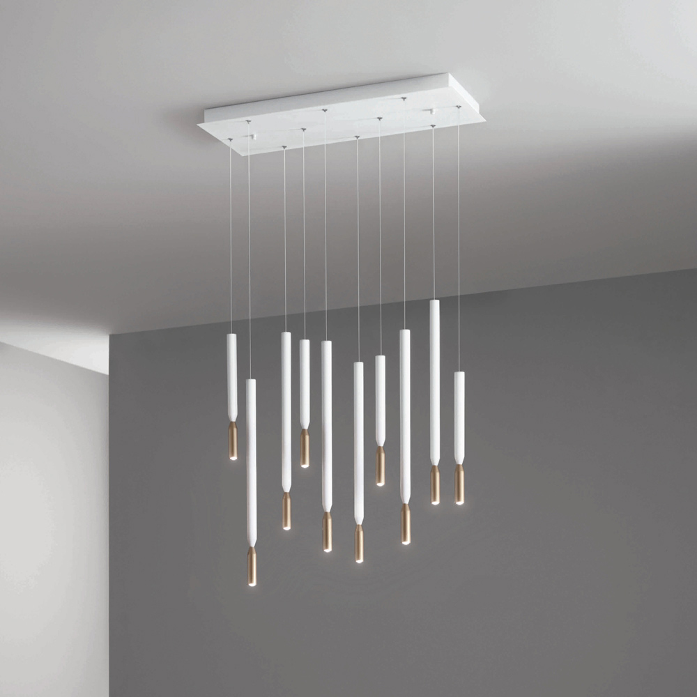 ثرياتم تصنيعها بالكامل في إيطاليا مصنوعة من المعدن المطلي باللون الأبيض والذهبي و 10 مصابيح LED قابلة للتعتيم مع كابلات قابلة للتعديل في الطول. يهدف هذا المنتج إلى تعزيز التقاليد من خلال نهج عصري ، حيث تجتمع الأناقة والرقي والابتكار لابتكار تصاميم جديدة تُضفي على أي بيئة لمسةً من الذوق الرفيع والطابع المميز. ومن أبرز مميزاته تميز الأشكالوجودة المواد المستخدمةوتميز مصدر الإضاءة .