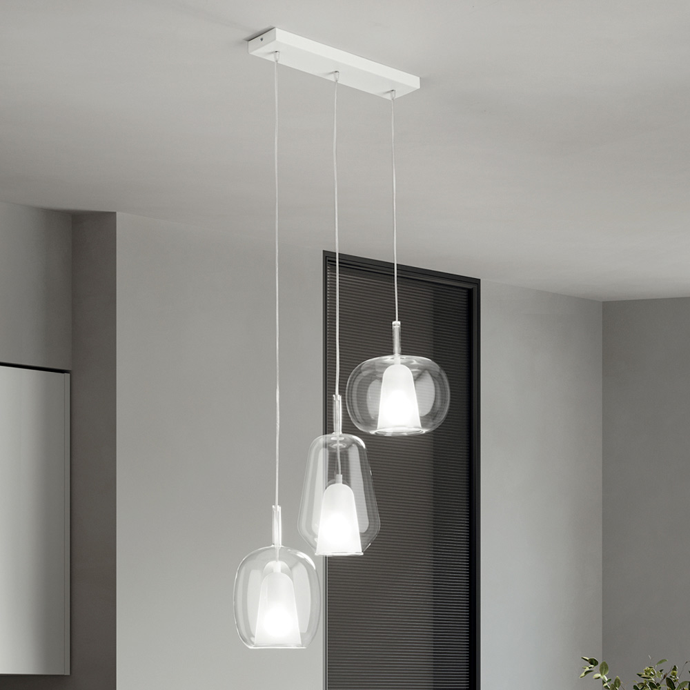 ثريا بثلاثة موزعات من الزجاج المنفوخ الشفاف، صنع في إيطاليا - تريلي