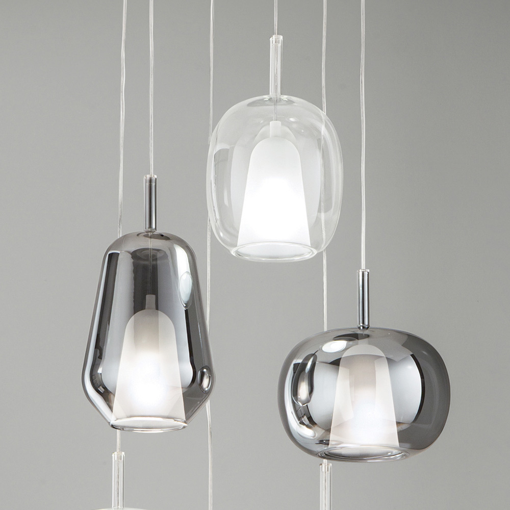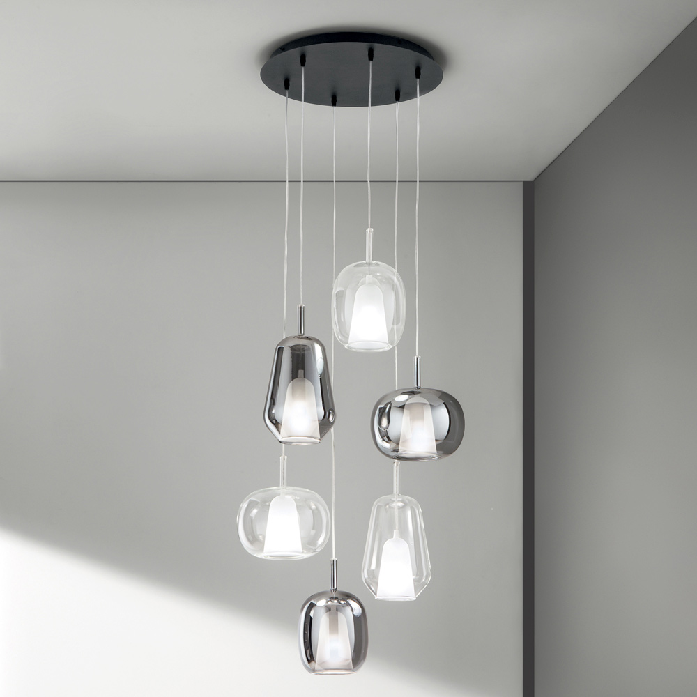 ثريا مع 6 موزعات زجاجية مدخنة وشفافة، صنع في إيطاليا - تريلي