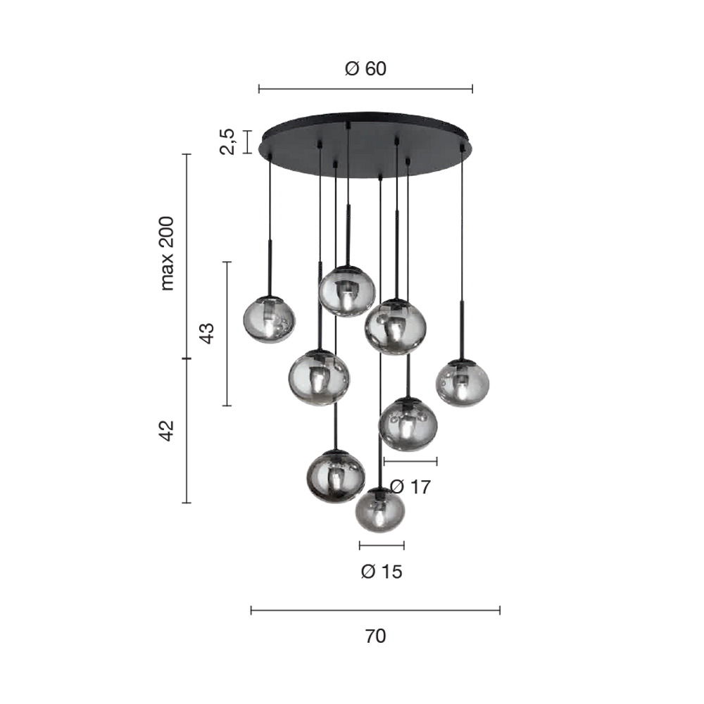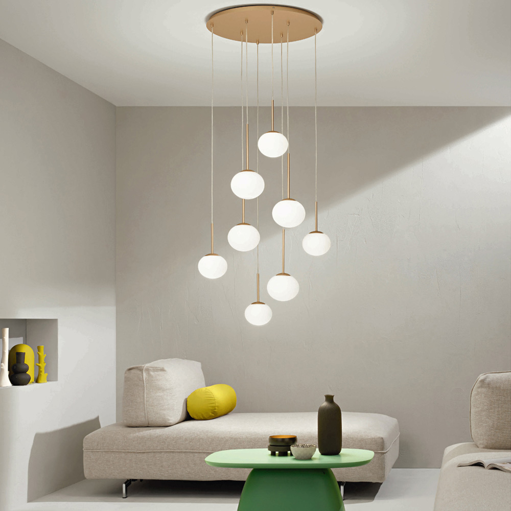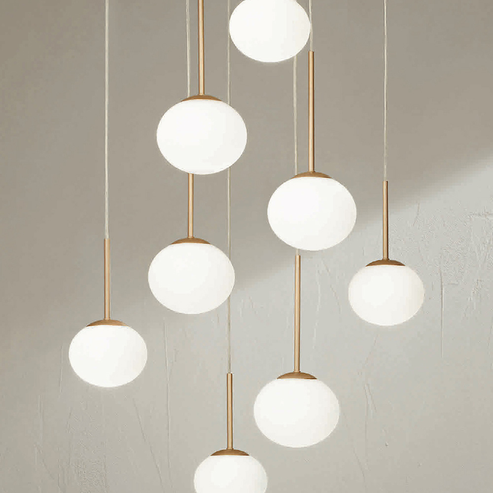 ثرياتم تصنيعها بالكامل في إيطاليا مصنوعة من المعدن المطلي والزجاج المنفوخ باللون الذهبي مع إضاءة LED وكابلات قابلة للتعديل في الطول. يهدف هذا المنتج إلى تعزيز التقاليد من خلال نهج عصري ، حيث تجتمع الأناقة والرقي والابتكار لابتكار تصاميم جديدة تُضفي على أي بيئة لمسةً من الذوق الرفيع والطابع المميز. ومن أبرز مميزاته تميز الأشكالوجودة المواد المستخدمةوتميز مصدر الإضاءة .