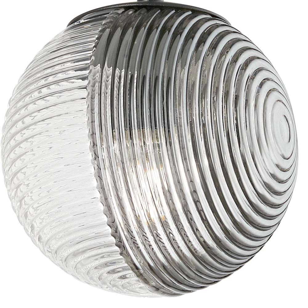 ثريا مصنوعة من الزجاج المنفوخ، كروية الشكل، بخط نصف كروي مقسمة إلى قسمين: شفاف وملون. إطارها معدني مطلي باللون الأسود غير اللامع، وقاعدتها السقفية معدنية سوداء . أسلاكها قابلة للتعديل، بحد أقصى 250 سم.