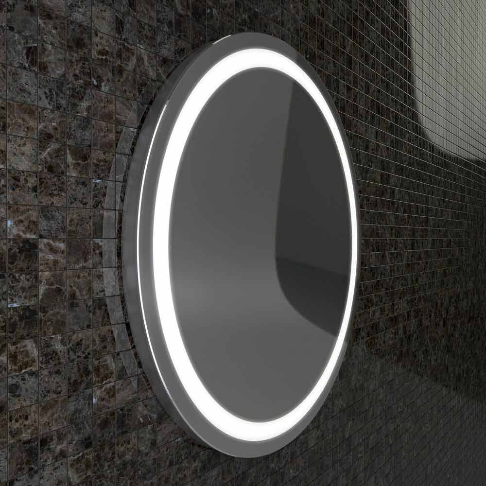 مرآة حمام شارلي LED مع حواف من الفولاذ المقاوم للصدأ، تصميم عصري. مرآة دائرية مع إضاءة خلفية LED مدمجة وحواف من الفولاذ المقاوم للصدأ.