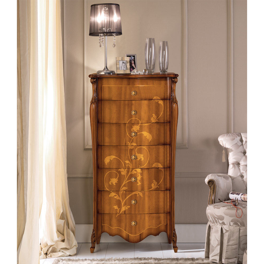 خزانة أدراج بتصميم كلاسيكي خالد، مزودة بسبعة أدراج عملية، مصنوعة من خشب جوز باسانو بتشطيبات مزخرفة . تتوفر الخزانة بحجمين مختلفين، لتلبية جميع الاحتياجات. قطعة فريدة وراقية، مصنوعة بالكامل في إيطالياعلى يد حرفيين ماهرين، خبراء في الفن، يُكملون كل قطعة ببراعة وذوق رفيع. يُصنع كل جزء باستخدام أجود الخامات، ويُنجز يدويًابأقصىدرجاتالعنايةوالاحترافية التي تميز المنتجات المصنوعة في إيطاليا .