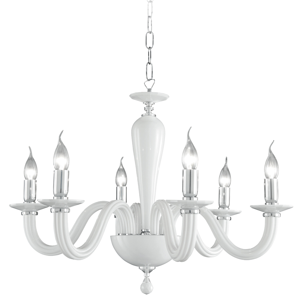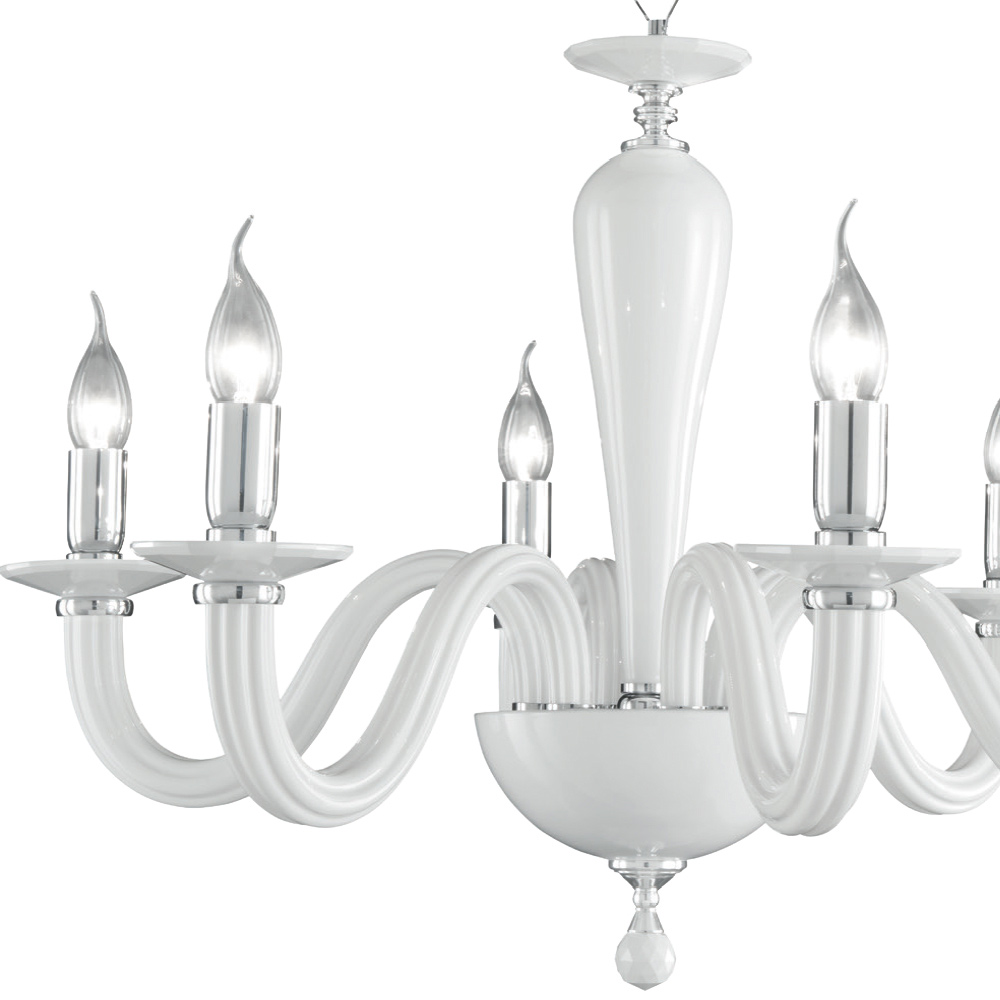 ثريا مكونة من 6 مصابيح مصنوعة يدويًا من الزجاج والمعدن الكروم، وهي فخامة كلاسيكية مصنوعة في إيطاليا.