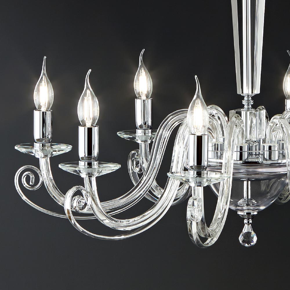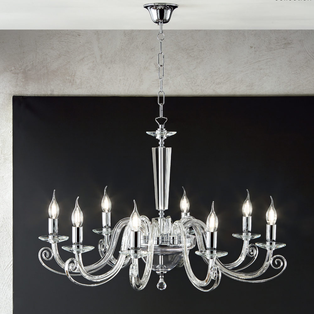 تتميز هذه الثريا المعلقة بالقدرة على تحديد البيئة وتتكون من 8 أذرع مقوسة ترتكز عليها الألواح التي تحتوي على مصادر الضوء وهيكل يحتوي على عناصر مربعة بأشكال مختلفة. مصنوعة من الزجاج المصنوع يدويًاوالكريستال البصري بمواد عالية الجودةواهتمام خاص بالتفاصيل ، ستصبح الثريا بطلة البيئة التي سيتم وضعها فيها، مزينة بالكريستال البصري المستدير وتفاصيل المعدن المطلي بالكروم وحاملات المصابيح.
