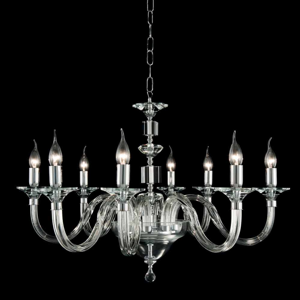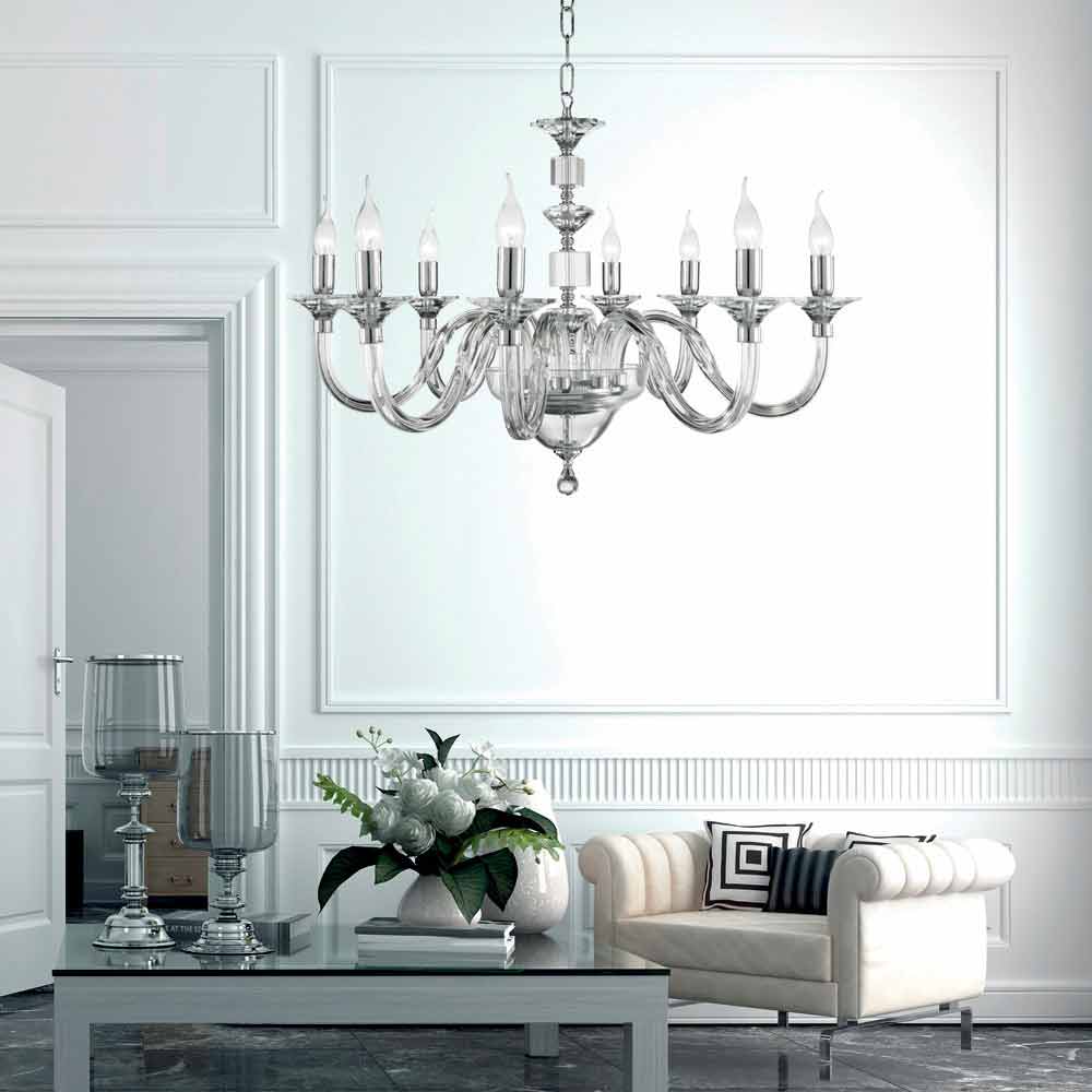 ثريا كلاسيكية ١٢ مصباحًا مصنوعة يدويًا من الزجاج والمعدن الإيطالي - ميموري