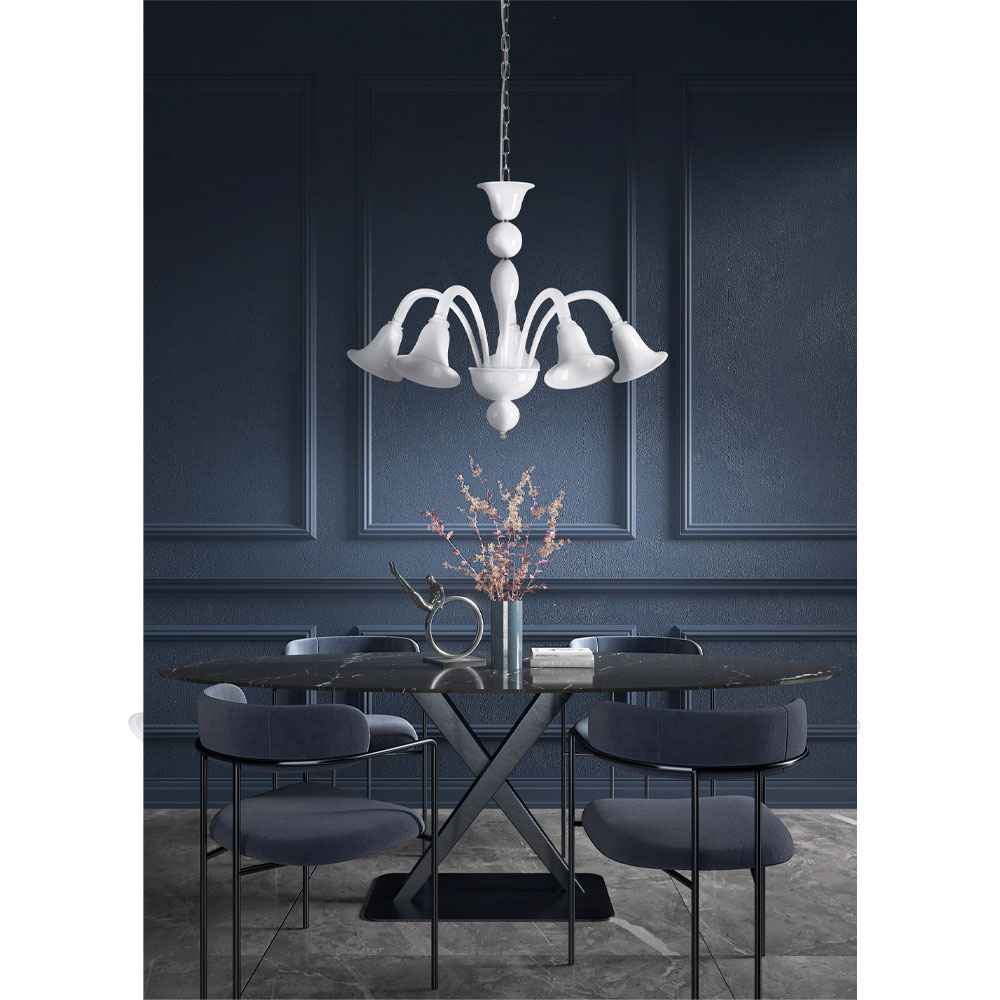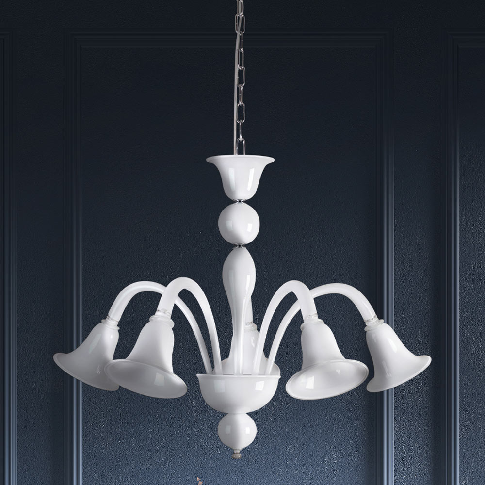 ثريا زجاجية بيضاء منفوخة يدويًا على طراز البندقية، على الطراز الكلاسيكي.
