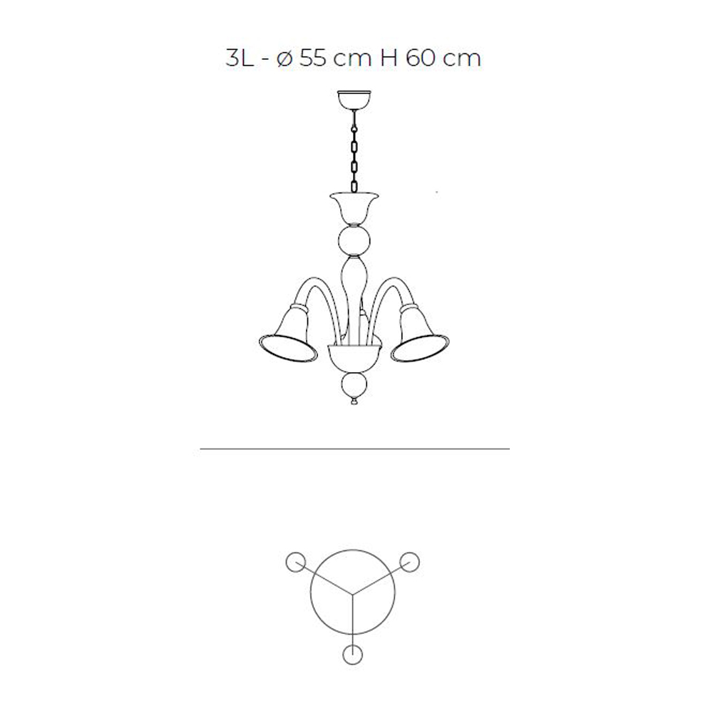 ثريا كلاسيكية مصنوعة يدويًا من الزجاج المنفوخ داخل أفران بحيرة البندقية في إيطاليا، من خلال استخدام تقنيات معالجة زجاج مورانو القديمة التي توارثتها أمهر أساتذة الزجاج على مر السنين.