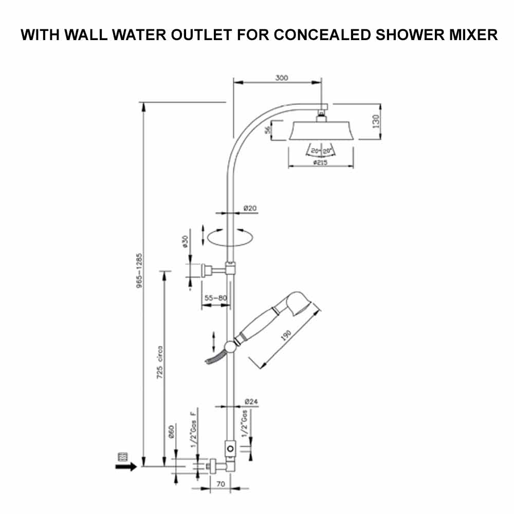 عمود دش بتصميم كلاسيكي من النحاس مع رأس دش دائري صنع في إيطاليا.