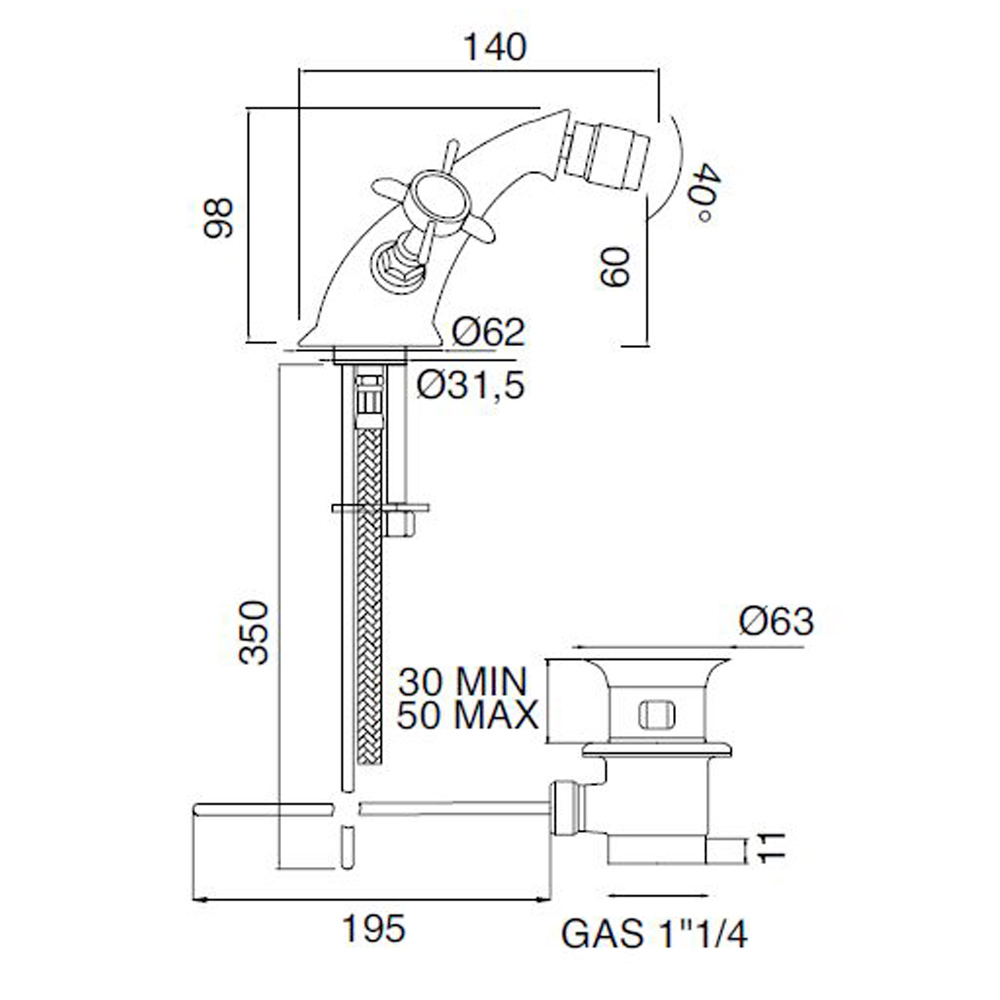 الحد الأدنى للضغط للتشغيل الجيد: 0.5 بار.