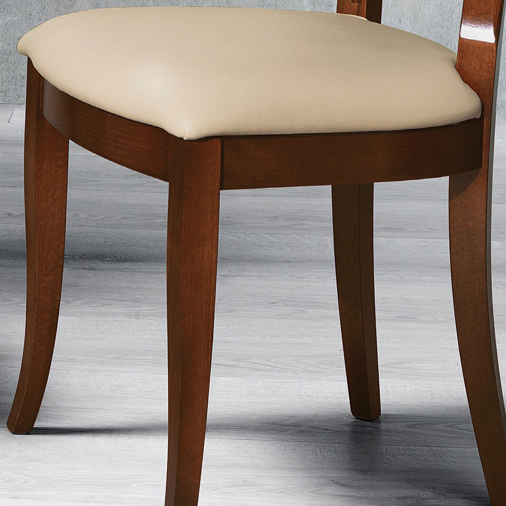 تم تصنيع كرسي غرفة المعيشة هذا بالكامل في إيطاليا بهيكل من خشب الزان متوفر بتشطيبات مختلفة مع ظهر مزخرفومقعد من الجلد البيئي.