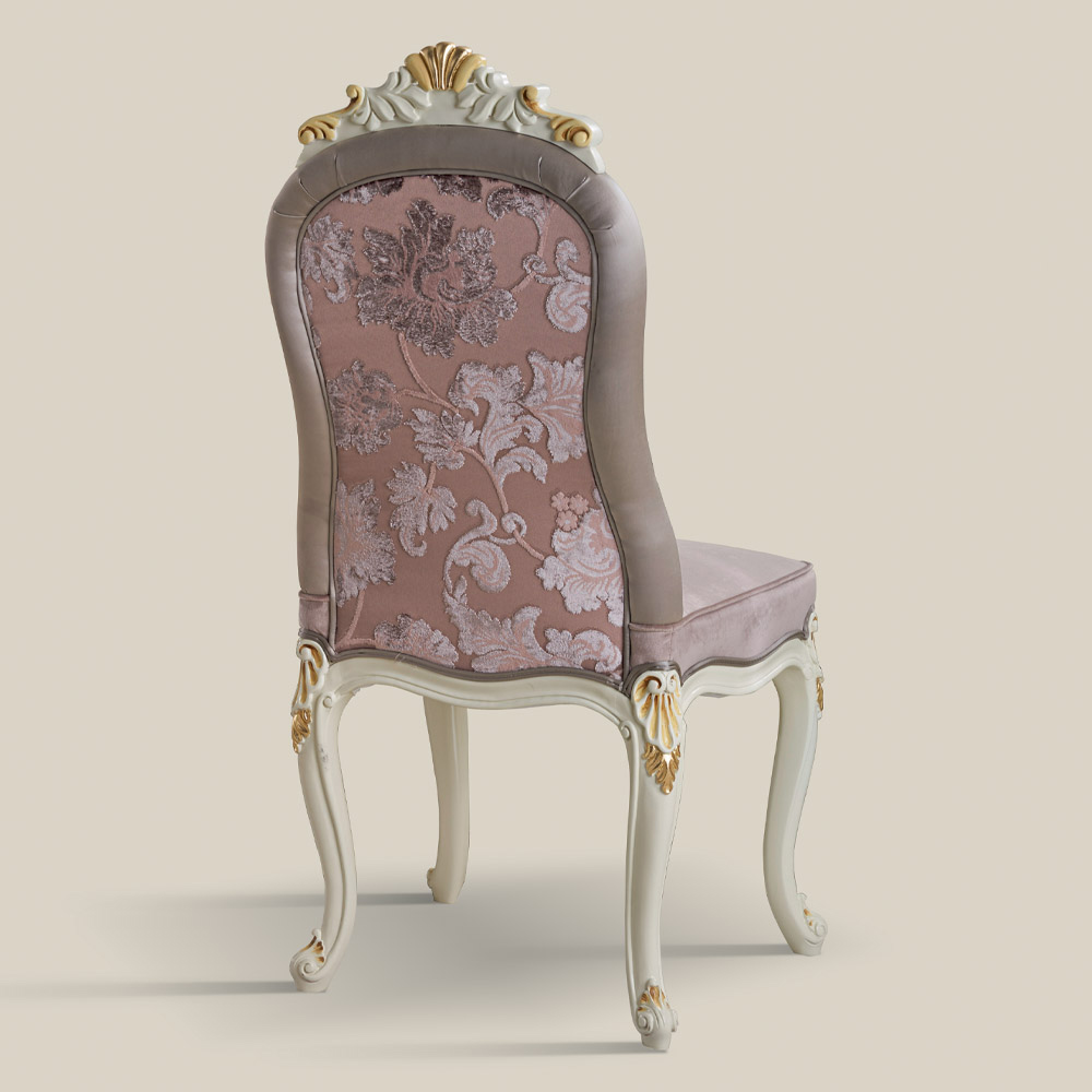 كرسي كلاسيكي من الخشب الأبيض والقماش المنجد صنع في إيطاليا.