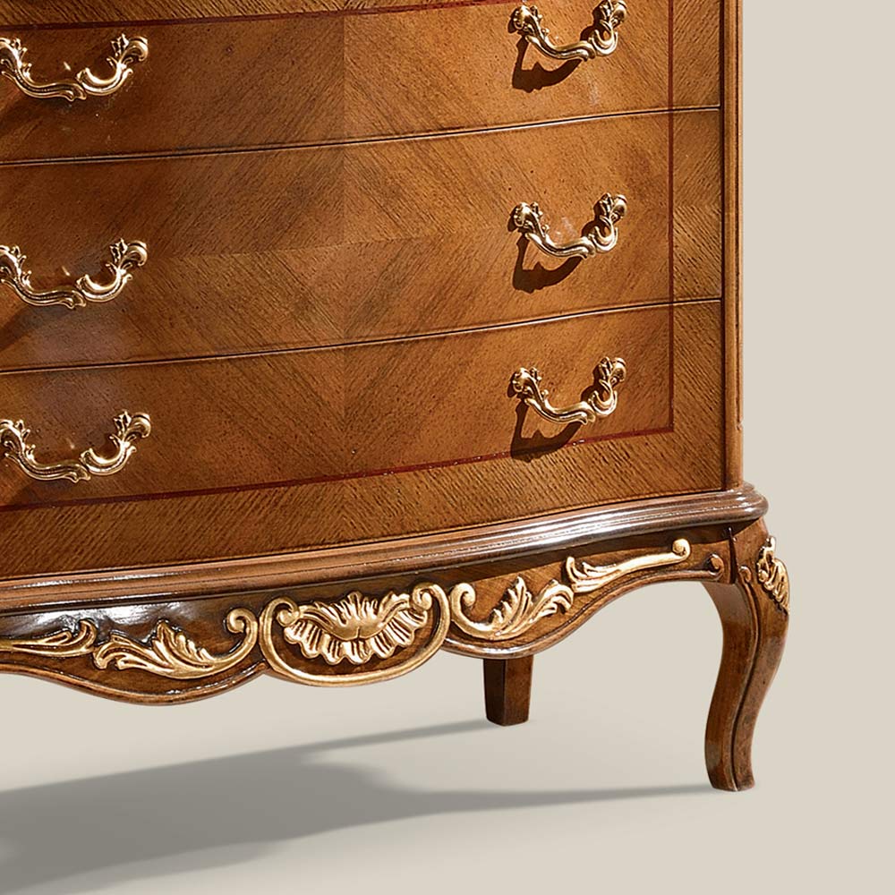 خزانة جانبية لغرفة المعيشةبتصميم كلاسيكي، مصنوعة من خشب ثمين، متوفرة بتشطيبات بيضاء مع تفاصيل فضية، أو من خشب جوز باسانو مع تطعيمات متعرجة وتفاصيل ذهبية. تُضفي لمسة راقية على غرفة المعيشة بأناقة ورصانة. مصنوعة بالكامل في إيطاليا ، ومصنوعة يدويًا على يد حرفيين ماهرين ، بإتقان وذوق رفيع. يُصنع المنتج باستخدام أجود الخامات ، ويُنجزيدويًا بأقصى درجات العناية والاحترافية التي تميز المنتجات المصنوعة في إيطاليا .
