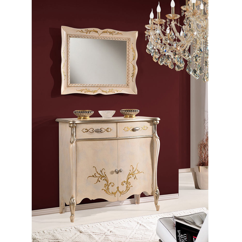 خزانة جانبية لغرفة المعيشة بتصميم كلاسيكي أنيق، مزودة ببابين ودرجين عمليين، متوفرة بلون جوز باسانو والذهبي العتيق أو الأبيض العتيق مع تطعيمات. قطعة فريدة وراقية، مصنوعة بالكامل في إيطالياعلى يد حرفيين ماهرين ، خبراء في الفن، يُكملون كل قطعة ببراعة وذوق رفيع. يُصنع المنتج باستخدام أجود الخامات ، ويُنجز يدويًابأقصى درجات العناية والاحترافية التي تميز المنتجات المصنوعة في إيطاليا .