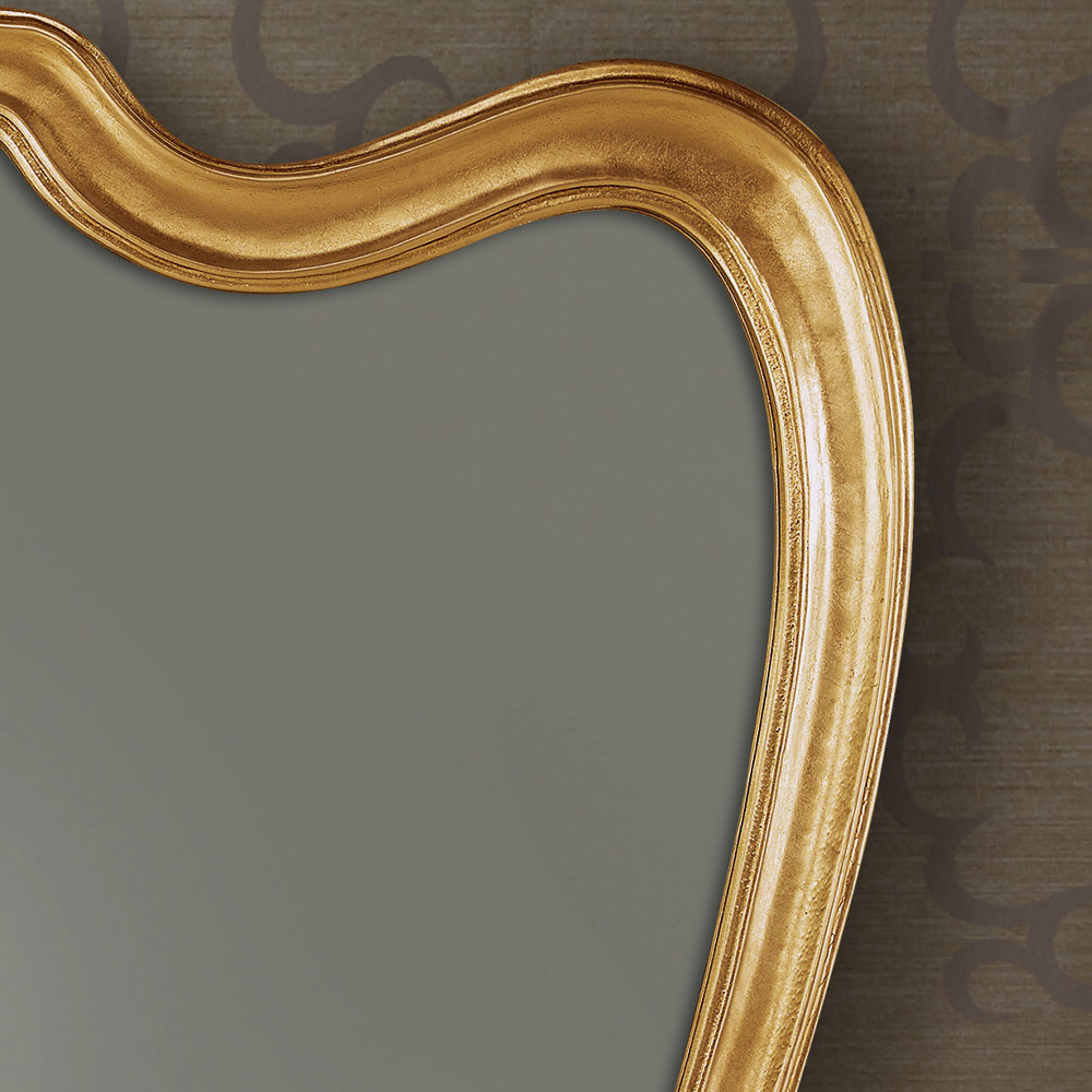 مرآة مُشكَّلةبإطار خشبي مُزخرف بورق الذهب . بفضل تصميمها الكلاسيكي ، تُضفي هذه المرآة لمسةً أنيقةً وفاخرةً على أي مكان. قطعة فريدة وراقية، مصنوعة بالكامل في إيطاليا على يد حرفيين ماهرين ، خبراء في الفن ، يُكملون كل قطعة ببراعة وذوق رفيع. يُصنع باستخدام أجود الخامات ، ويُنجز العمليدويًا بأقصى درجات العناية والاحترافية التي تُميز المنتجات المصنوعة في إيطاليا .