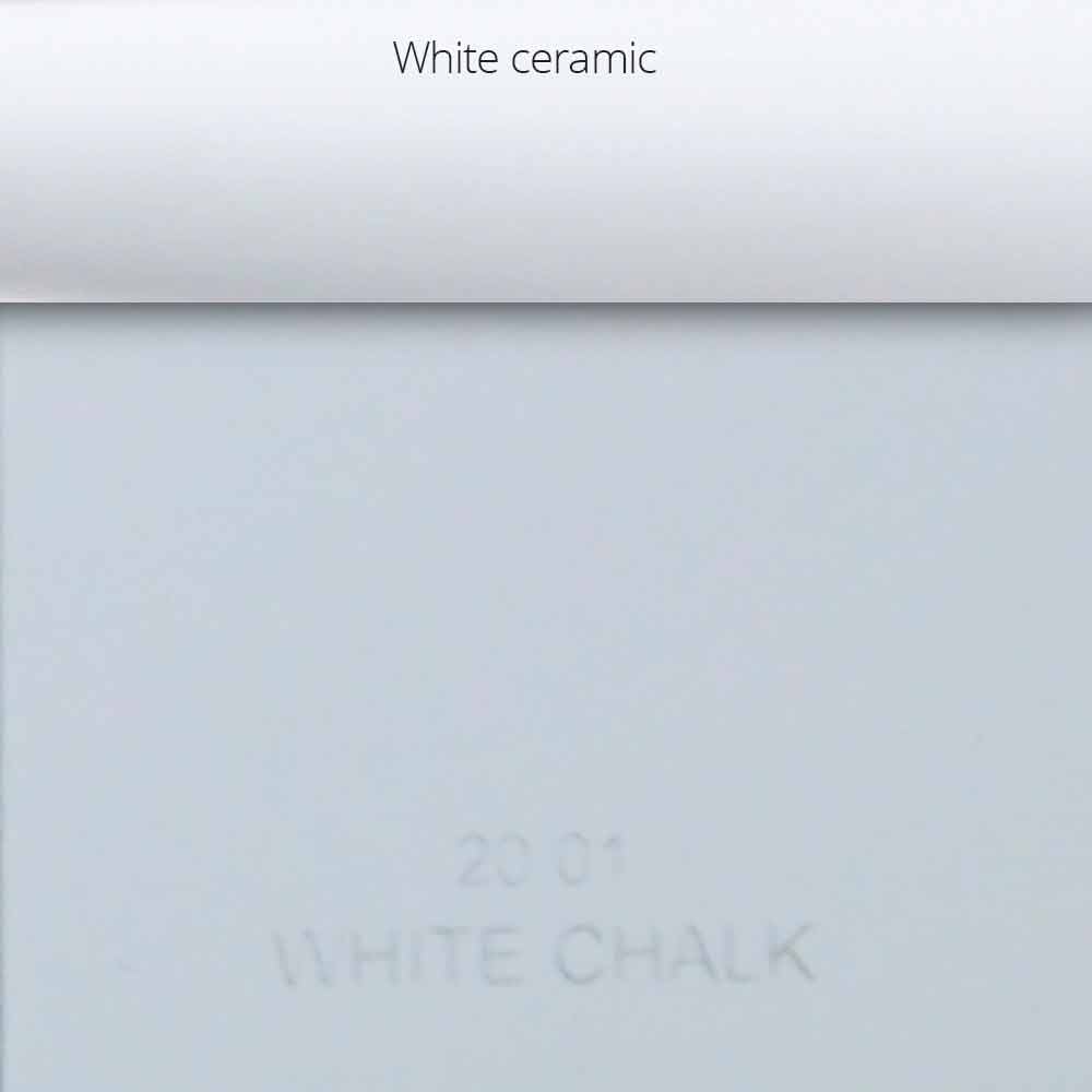 الطباشير الأبيض: لمسة نهائية بيضاء غير لامعة مع إدخالات سيراميك بيضاء على المقابض؛