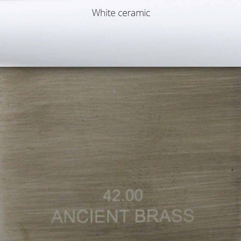 نحاس عتيق: لمسة نهائية من النحاس العتيق غير اللامع مع إدخالات سيراميك بيضاء على المقابض؛