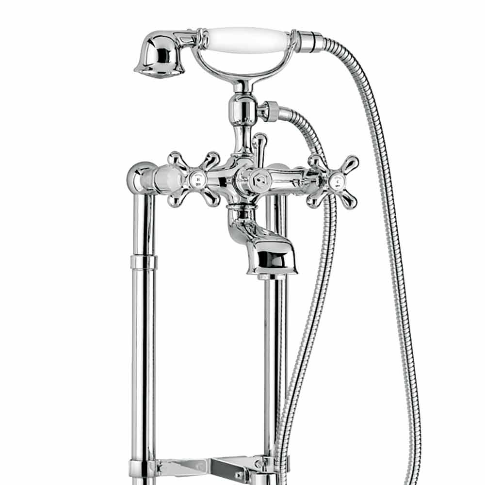 خلاط حمام مكشوف على أعمدة أرضية مع محول ودش يدوي مزدوج صنع في إيطاليا.