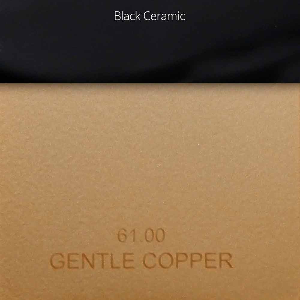 نحاس لطيف: لمسة نهائية معدنية نحاسية فاتحة غير لامعة مع لمسات سيراميك سوداء على المقابض؛