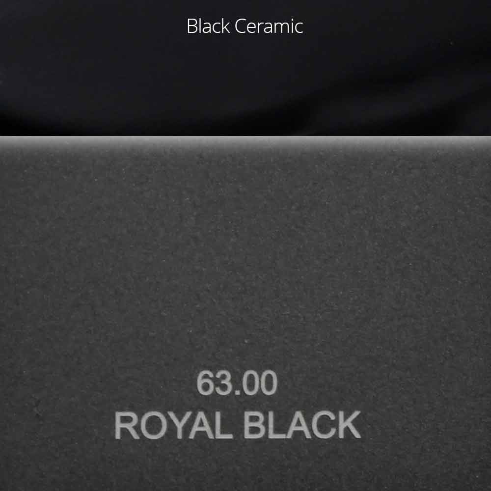 الأسود الملكي: لمسة نهائية معدنية بلون البندقية غير اللامع مع لمسات سيراميك سوداء على المقابض؛
