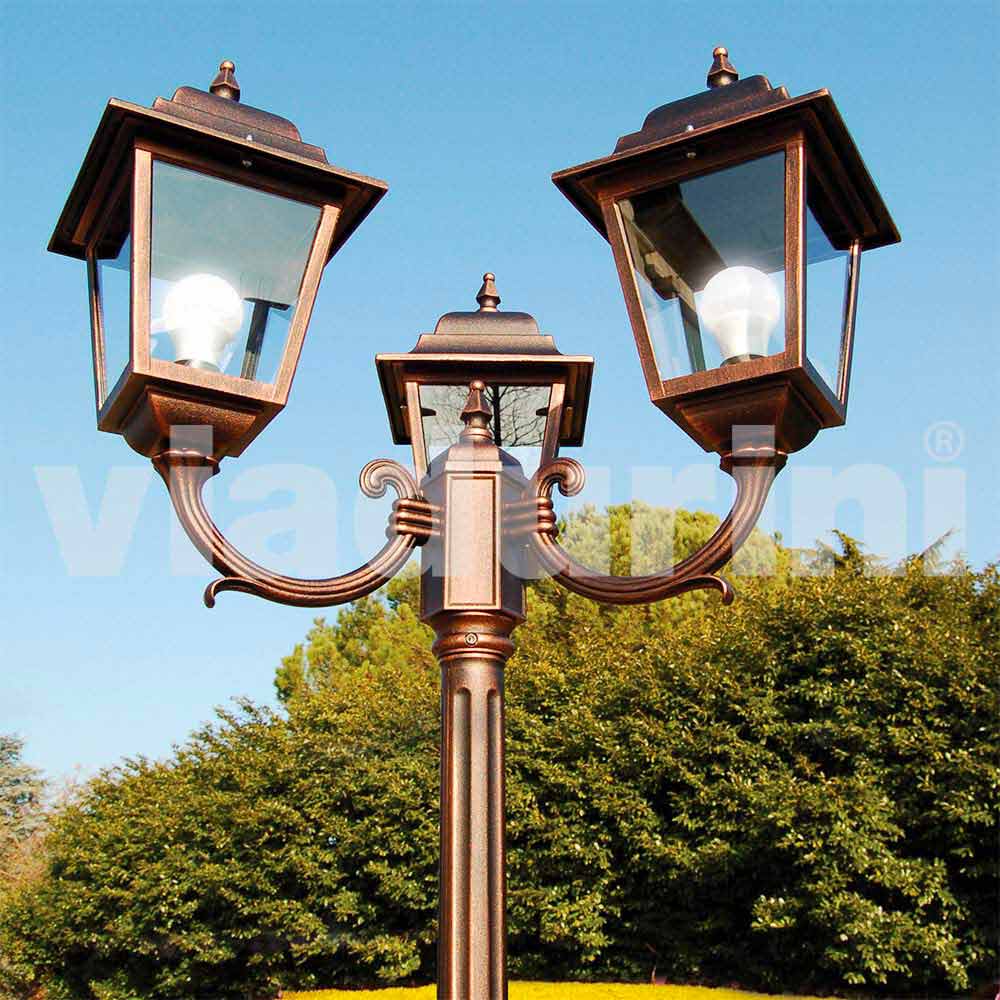 عمود إنارة خارجي كلاسيكي من الألومنيوم مصنوع في إيطاليا، أكويلينا Aquilina هو مصباح حديقة بثلاثة أضواء مصنوع يدويًا في إيطاليا بمواد عالية الجودة: هيكل من الألومنيوم المصبوب وناشر زجاجي متوفر: شفاف أو مصقول بالرمل.