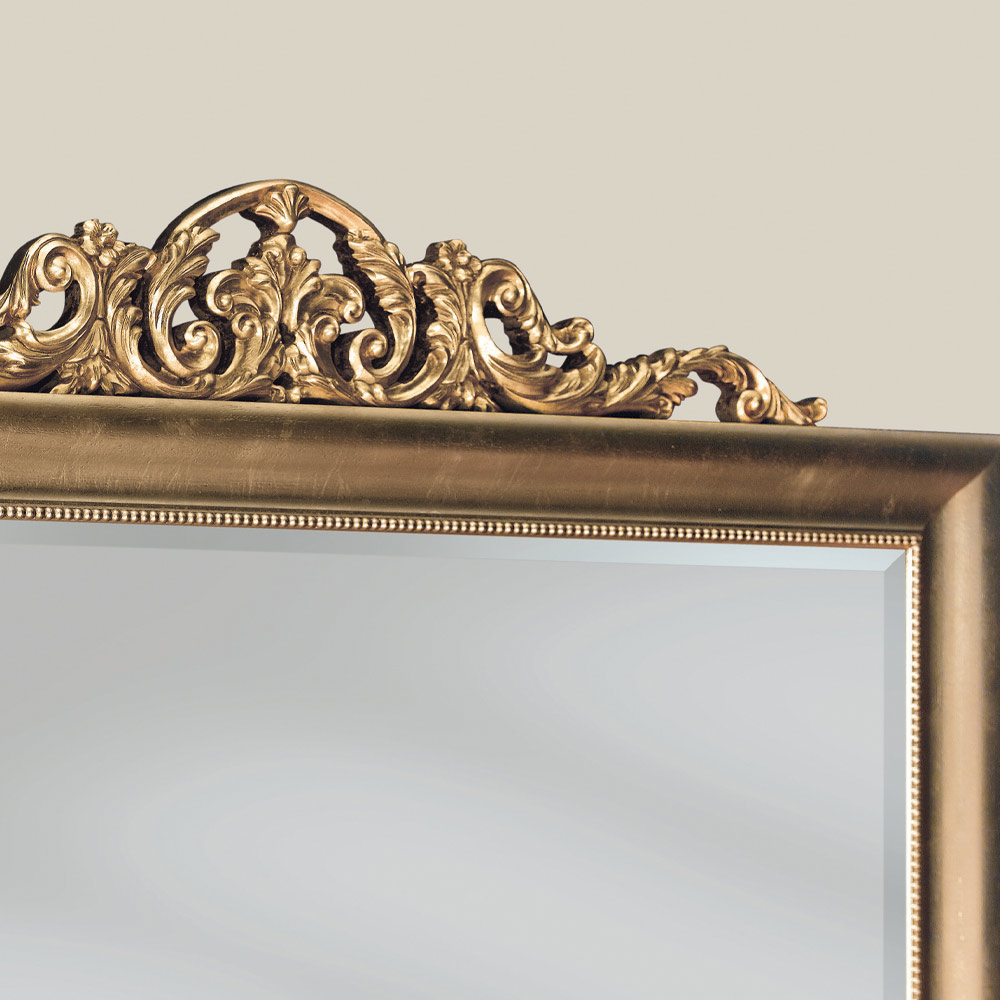 مرآة مستطيلة أنيقة بإطار خشبي مزين بورق الذهب بزخارف طبيعية.بفضل تصميمها الكلاسيكي ، تعد هذه المرآة مثالية لإضفاء لمسة أنيقة وفاخرة على أي غرفة. قطعة فريدة وراقية، مصنوعة بالكامل في إيطاليا على يد حرفيين ماهرين ، خبراء في الفن ، يُكملون كل قطعة ببراعة وذوق رفيع. يُصنع باستخدام أجود الخامات ، ويُنجز العمليدويًا بأقصى درجات العناية والاحترافية التي تُميز المنتجات المصنوعة في إيطاليا .