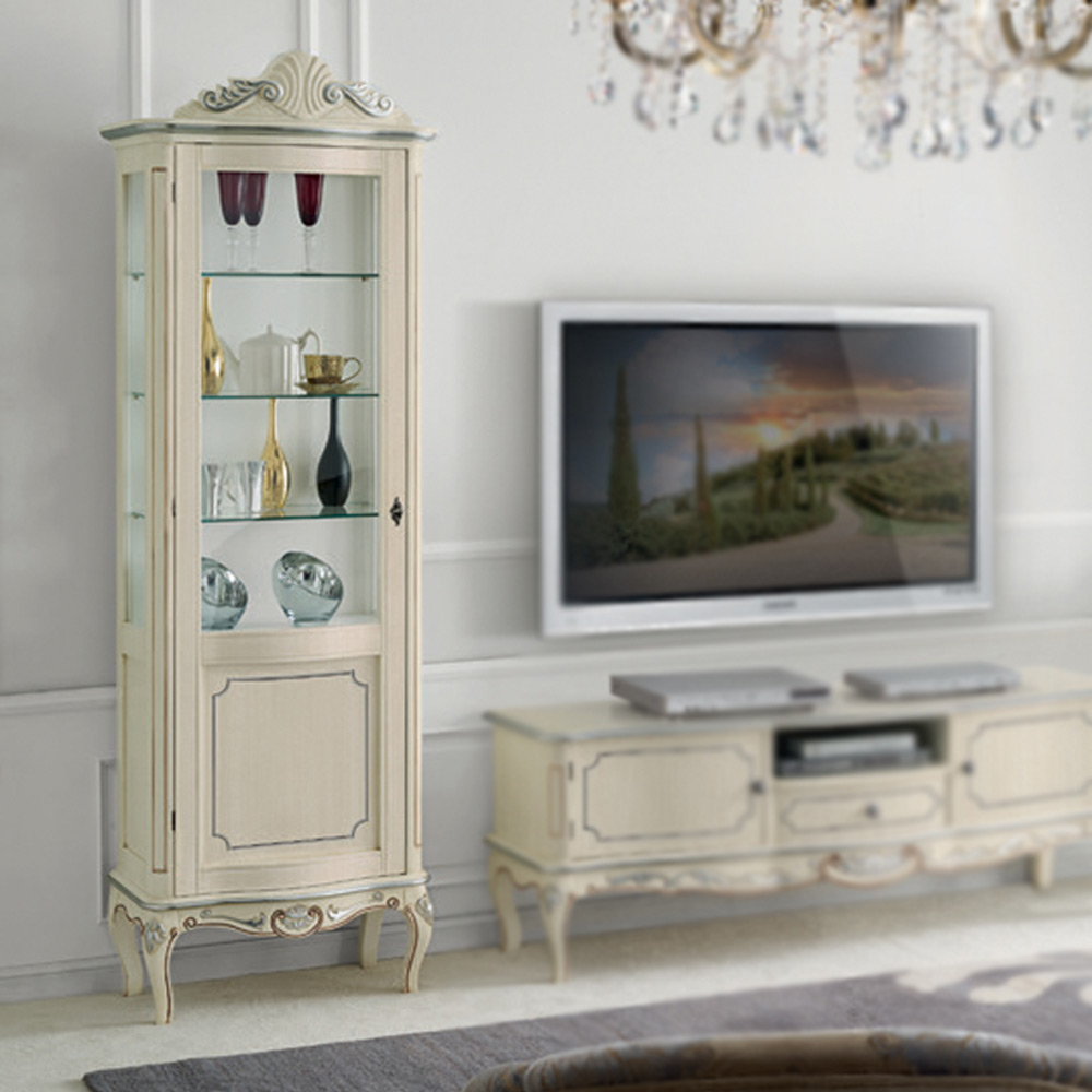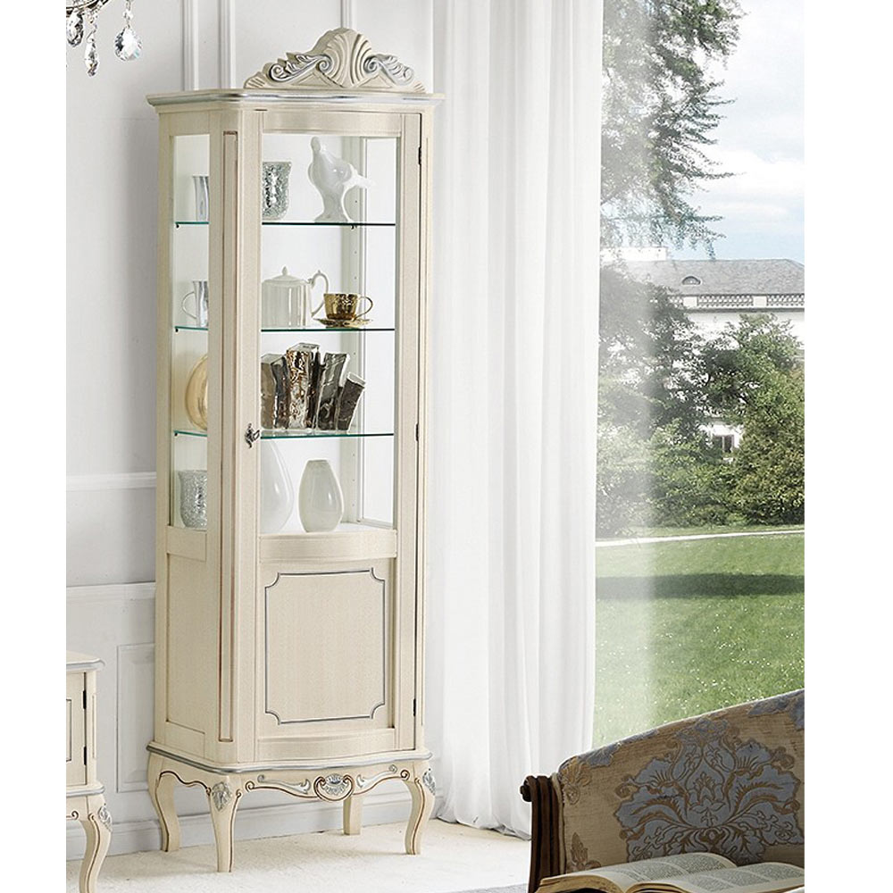 خزانة عرض كلاسيكية باللون الأبيض الجوزي أو الموكا صنع في إيطاليا.