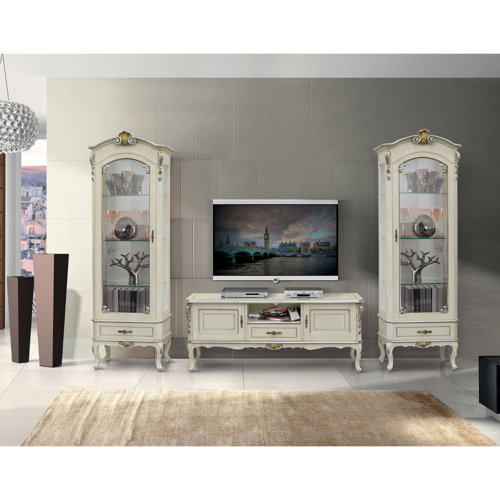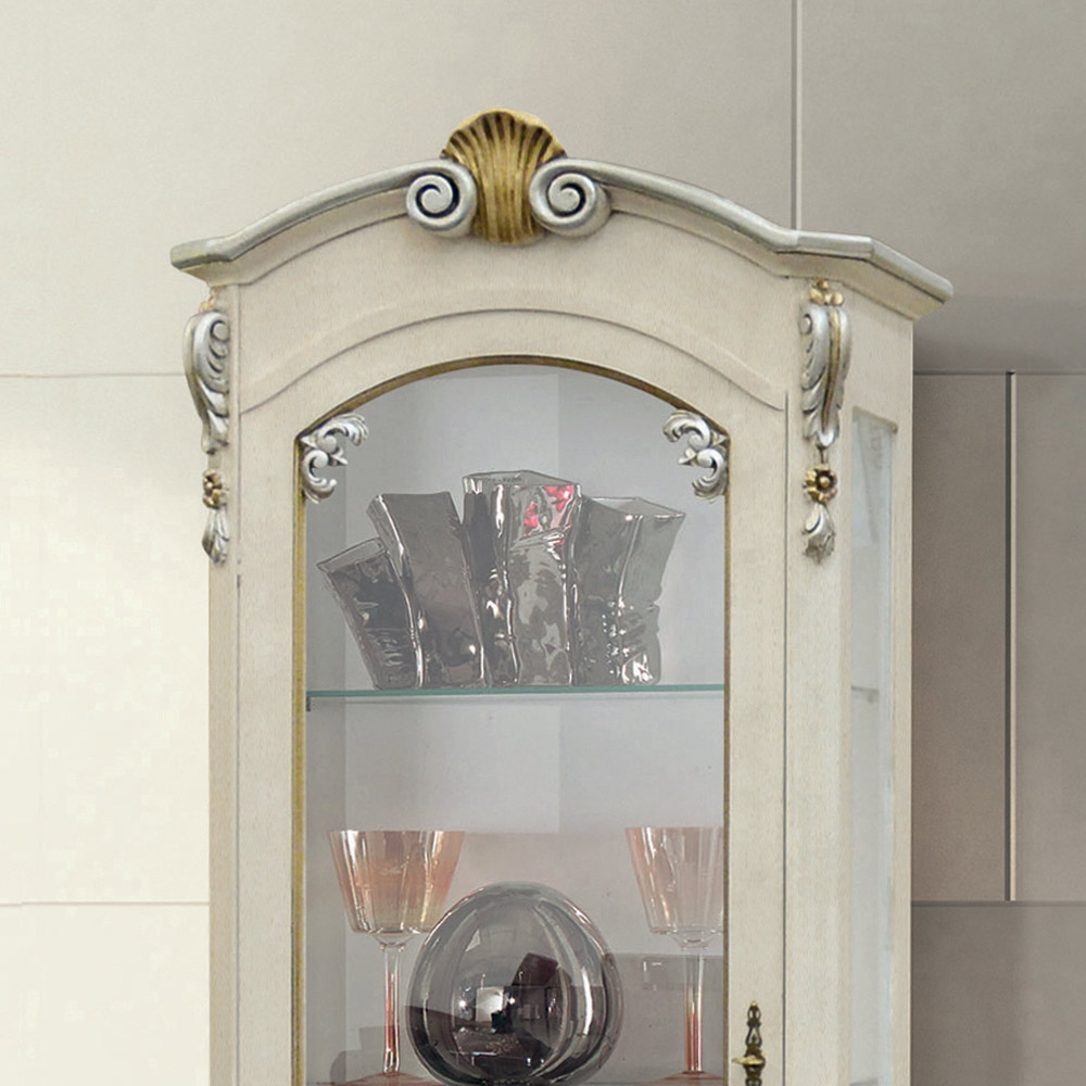 خزانة عرض فاخرة لغرفة المعيشة بتصميم كلاسيكي، مصنوعة من خشب أبيض فاخر، مزودة بباب ودرج عملي. متوفرة بنسخة تفتح يمينًا أو يسارًا، لتناسب جميع احتياجات الأثاث. أنيقة وعصرية، هذه الخزانة الكلاسيكية مثالية لإضفاء لمسة جمالية على ديكورات غرف المعيشة. مصنوعة يدويًا بالكامل في إيطالياعلى يد حرفيين مهرة ، بلمسة من الحكمة والذوق الرفيع. يتم الإنتاج باستخدام أجود الخامات ، ويتم العمليدويًا بأقصى درجات العناية والاحترافية التي تميز المنتجات المصنوعة في إيطاليا .