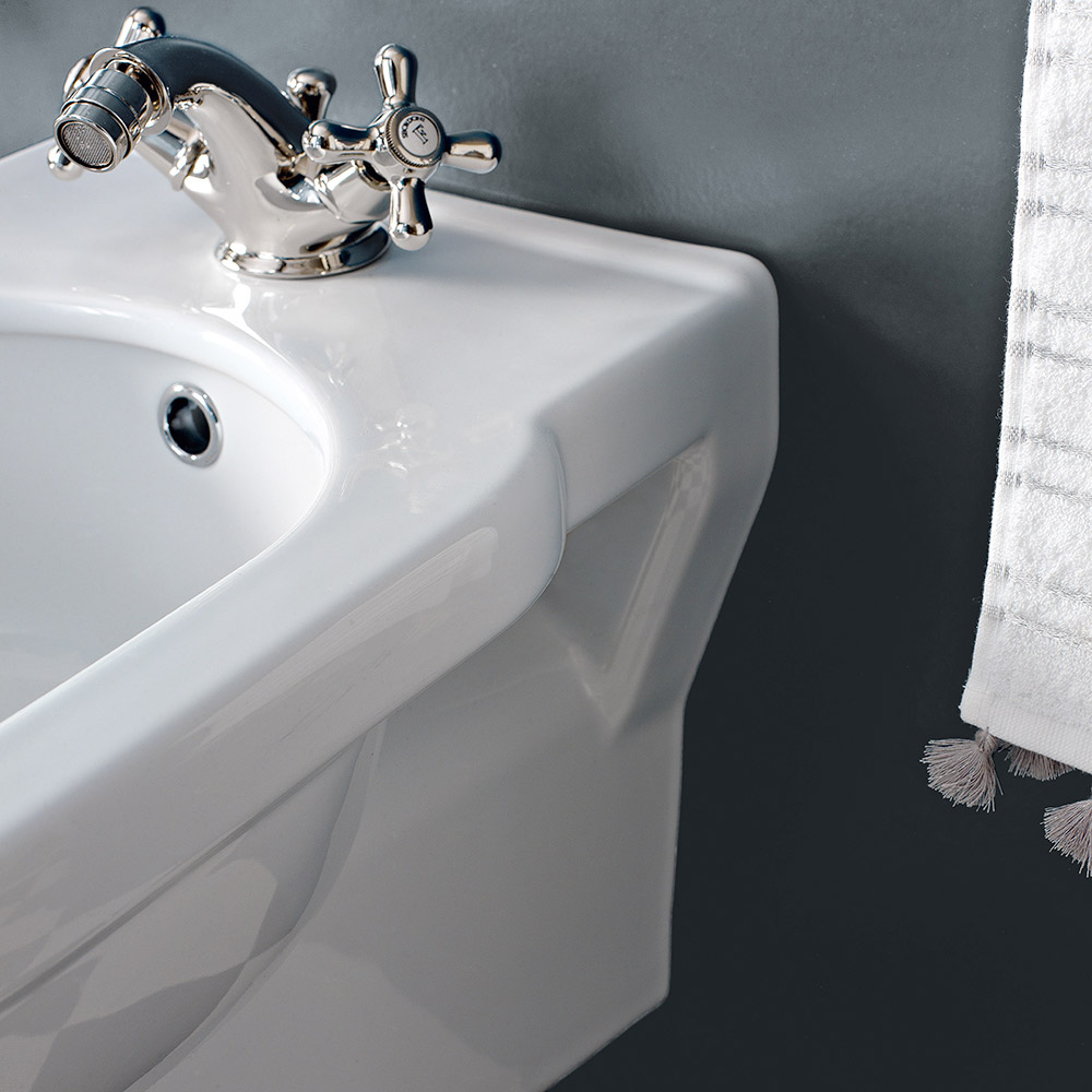 مروةهو بيديه ثابت مثبت على الحائط بفتحة واحدة مع مصدر خارجي مصنوع يدويًا في إيطاليا من السيراميك الأبيض . بفضل الجمع بين خفة الوزن والتصميم، سيكون مثاليًا ليكون بطل الحمام الخاص بك.
