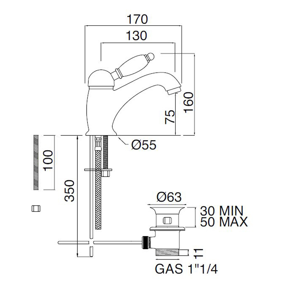 خلاط صنبور الحوض مع رافعة على الطراز الكلاسيكي من النحاس المصنوع يدويًا في إيطاليا.