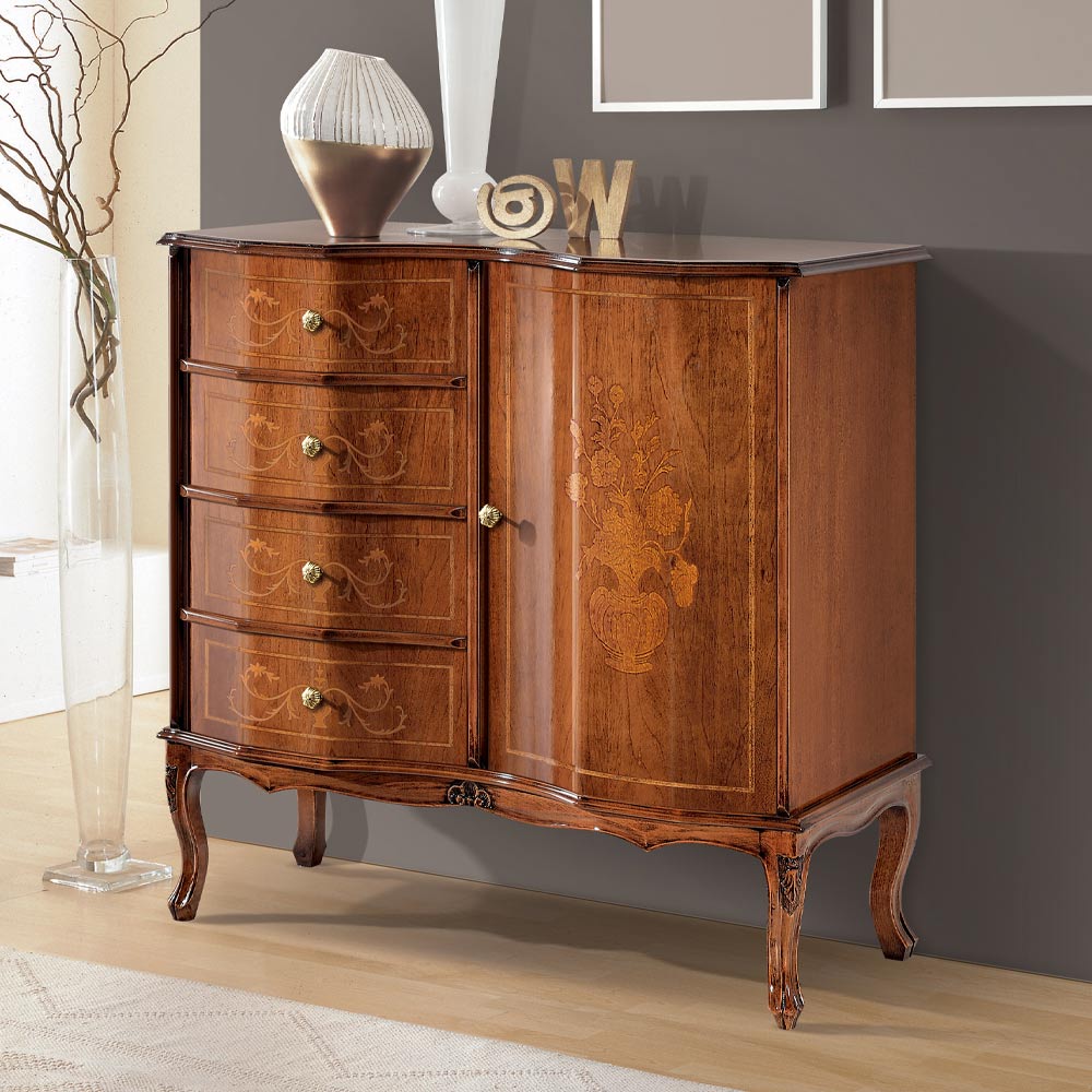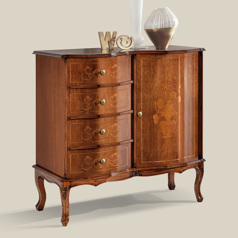 خزانة أدراج على الطراز الكلاسيكي مع باب و 4 أدراج صنع في إيطاليا.