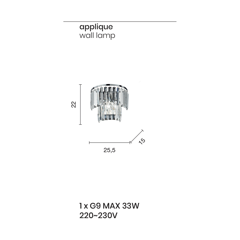 يتكون من هيكل معدني فضي ونقطة قوته هي المعلقات الكريستالية التي تزين وتضيء كل غرفة بالذوق والشخصية، في مزيج من الأسلوب والفخامة والابتكار.