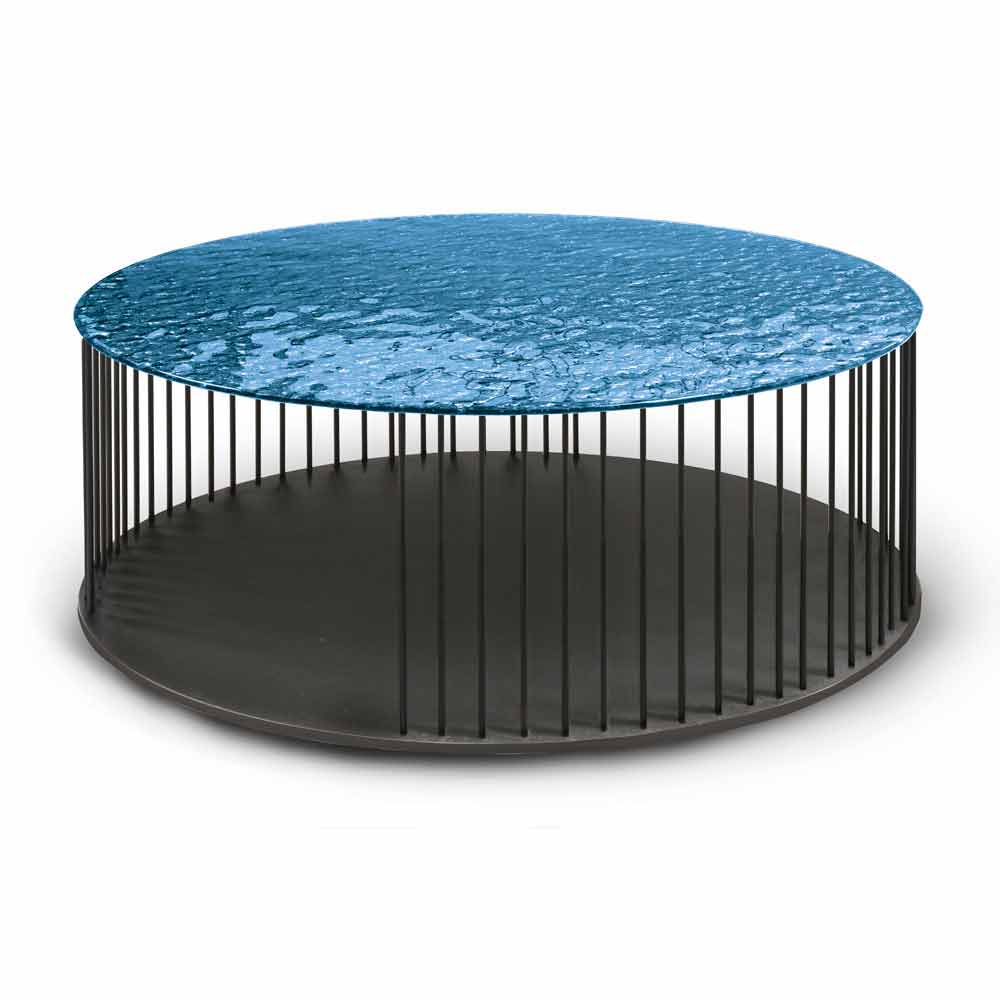 طاولة قهوة مصنوعة من الكريستال المزور والمعدن الأسود صنع في إيطاليا.
