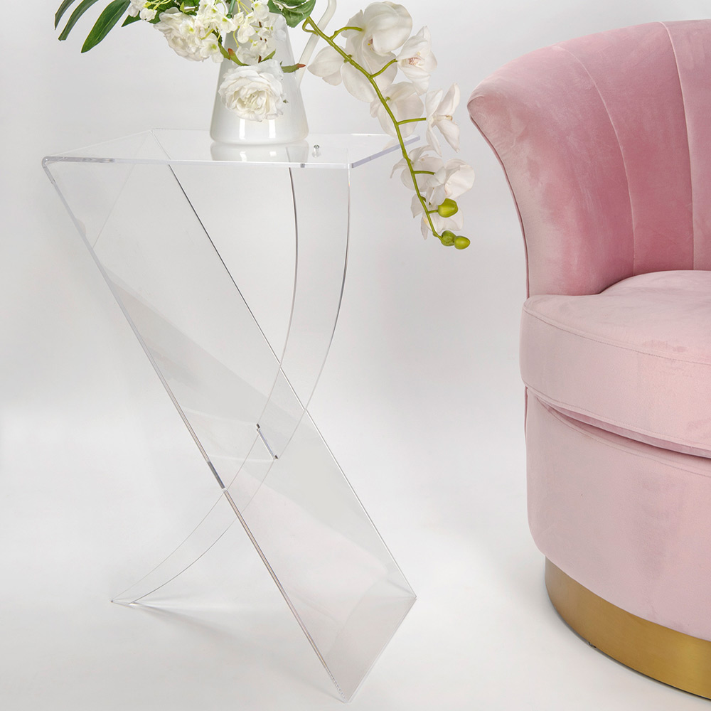 جوهرة تصميمية، طاولة جانبية للأريكة تجمع بين العملية والأناقة في تصميم نقي وشفاف. سيُضفي هذا التصميم الفريد لمسةً من التألق على كل ركن من أركان منزلك أو حديقتك بفضل هذه القطعة الفريدة، التي تجمع بين البساطة والتأثير.