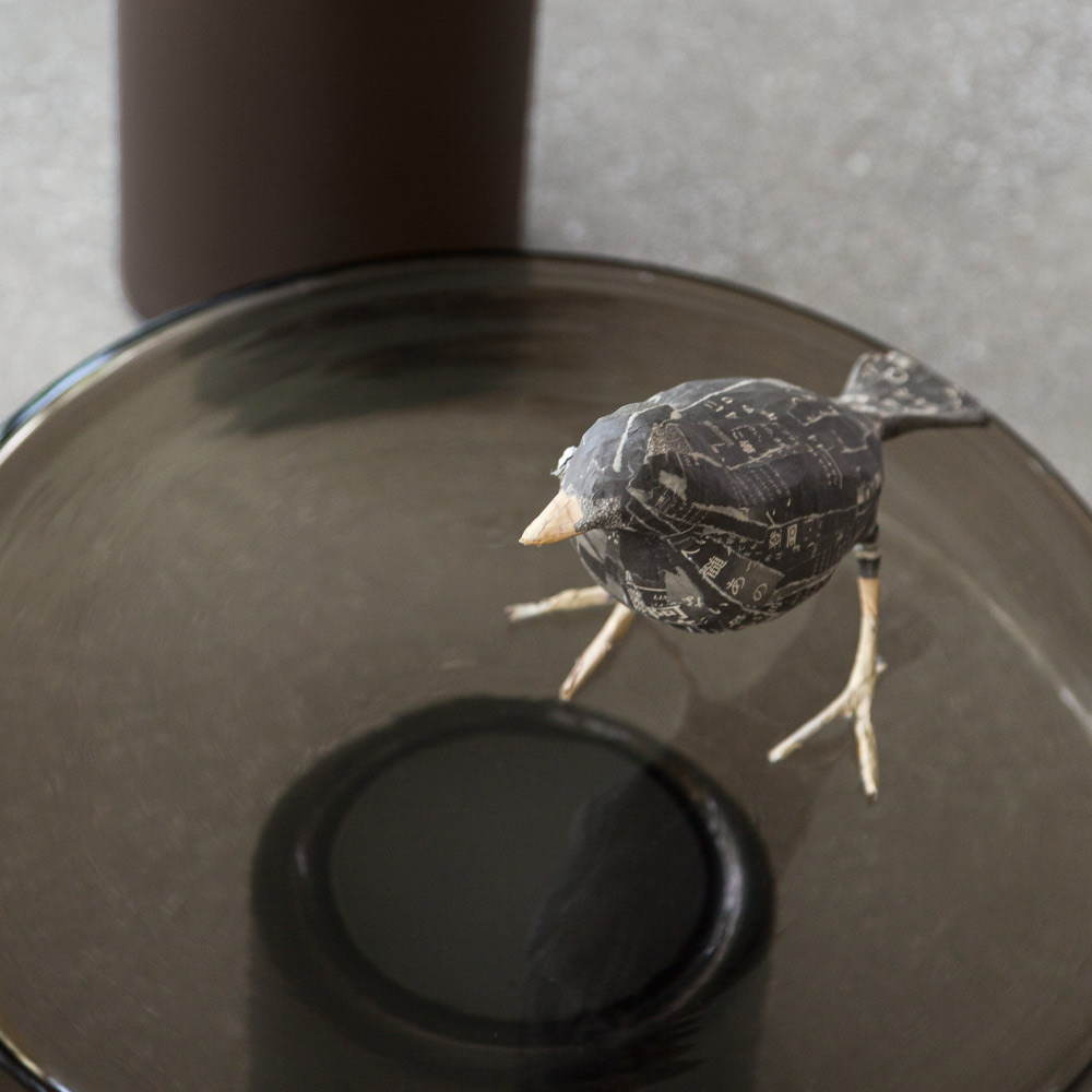 الجزء العلوي مصنوع من زجاج شفاف مدخن ناعم، وقاعدة من الجرافيت المنقوش
