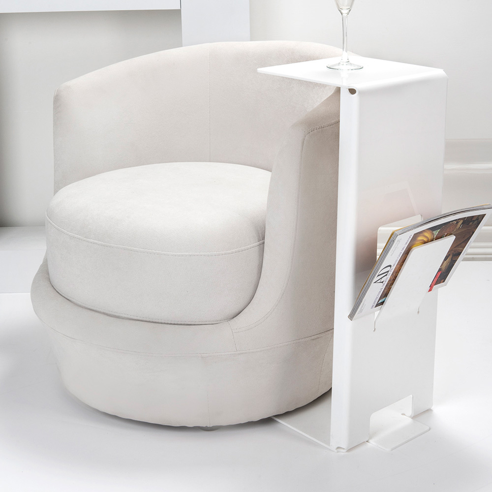 بالإضافة إلى مظهرها المتطور، توفر طاولة القهوة هذه راحة إضافية بفضل رف المجلات المدمج بها، وهو مثالي لتنظيم مواد القراءة المفضلة لديك أو ببساطة عرض كتب الفن والمجلات التي تعكس أسلوبك الشخصي.