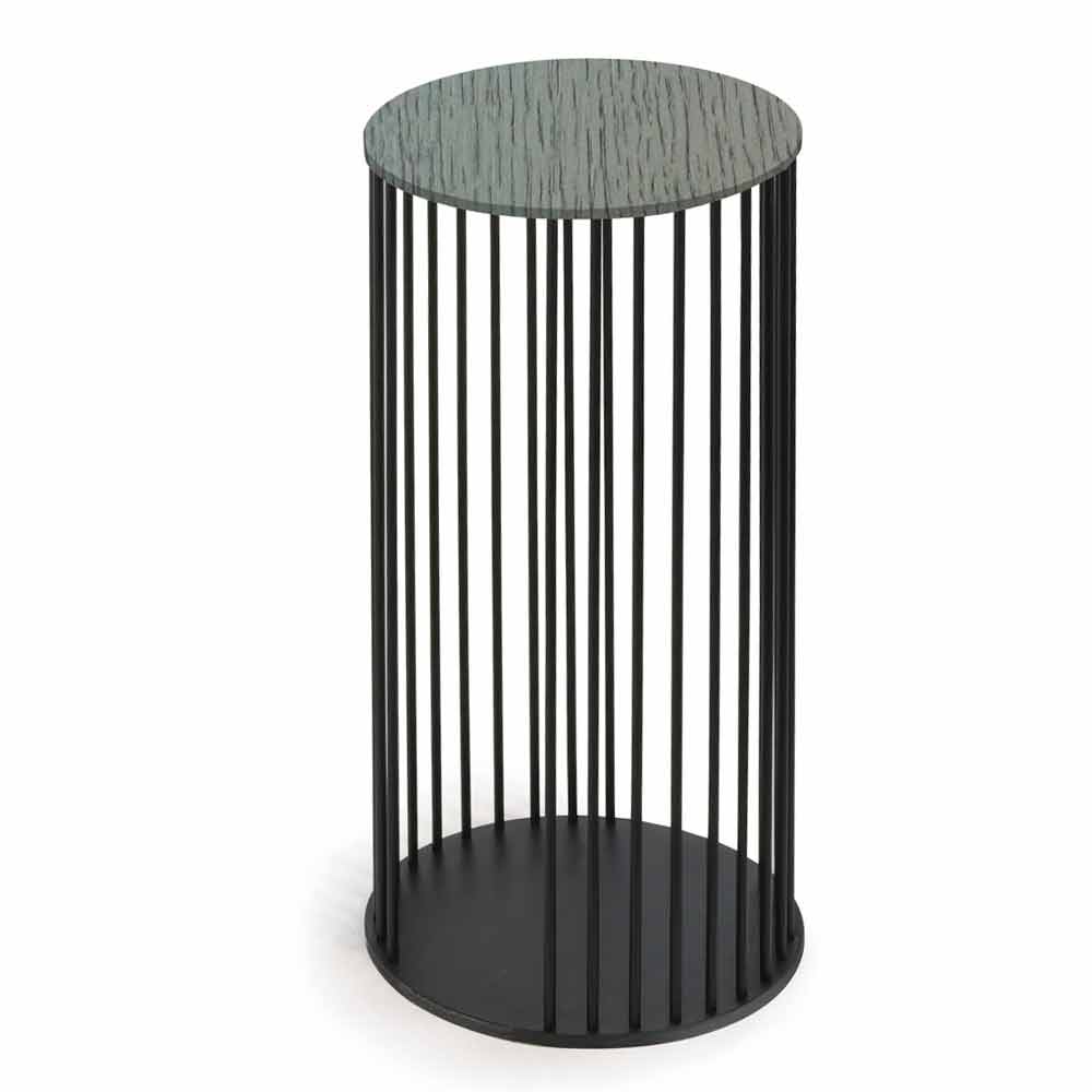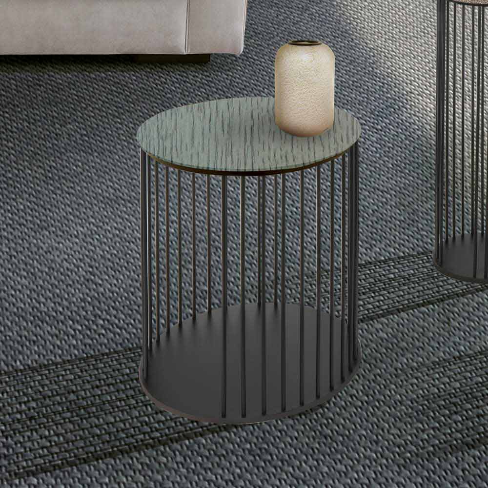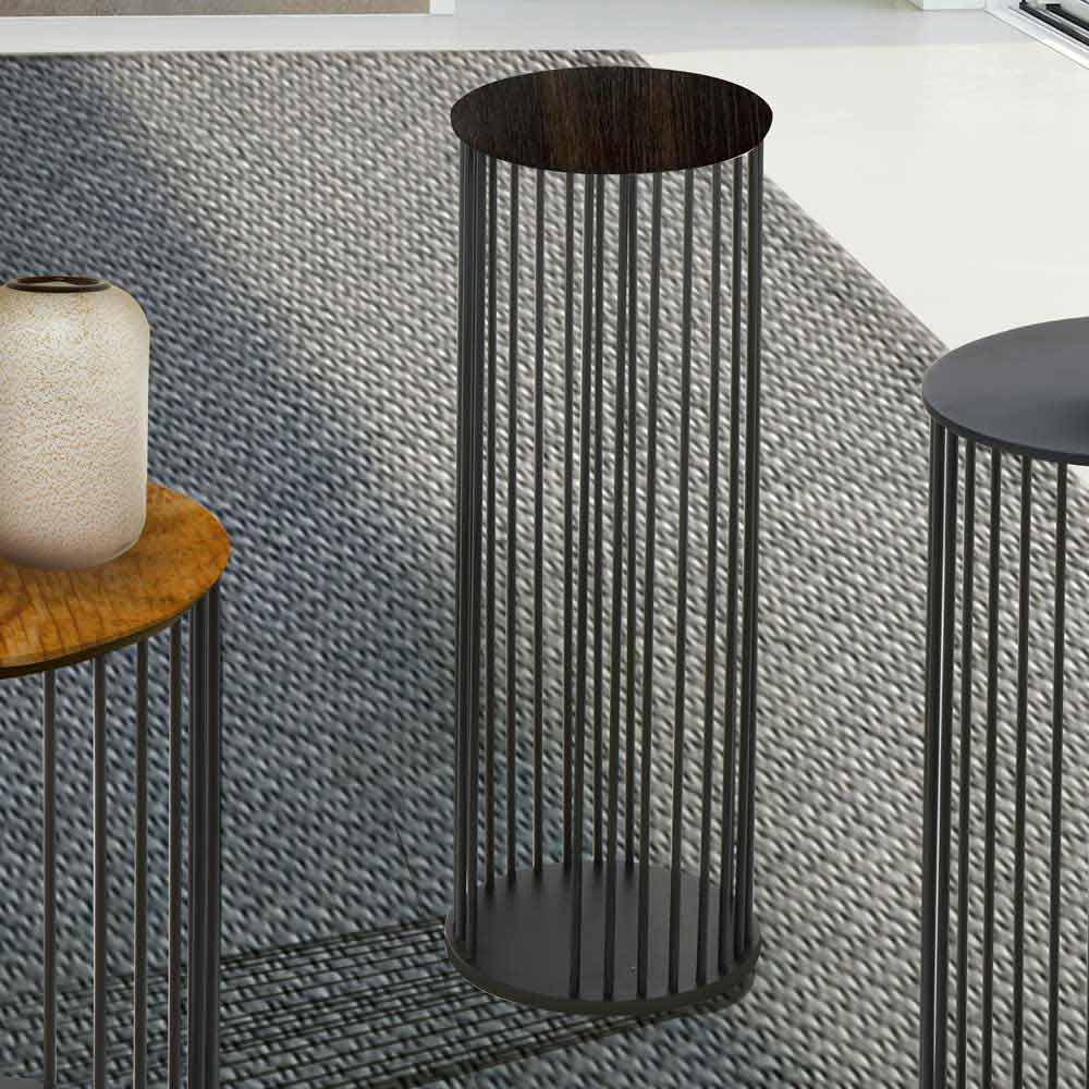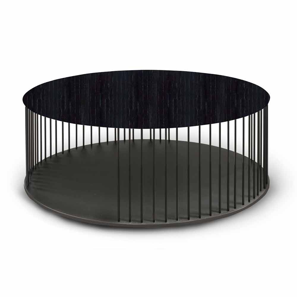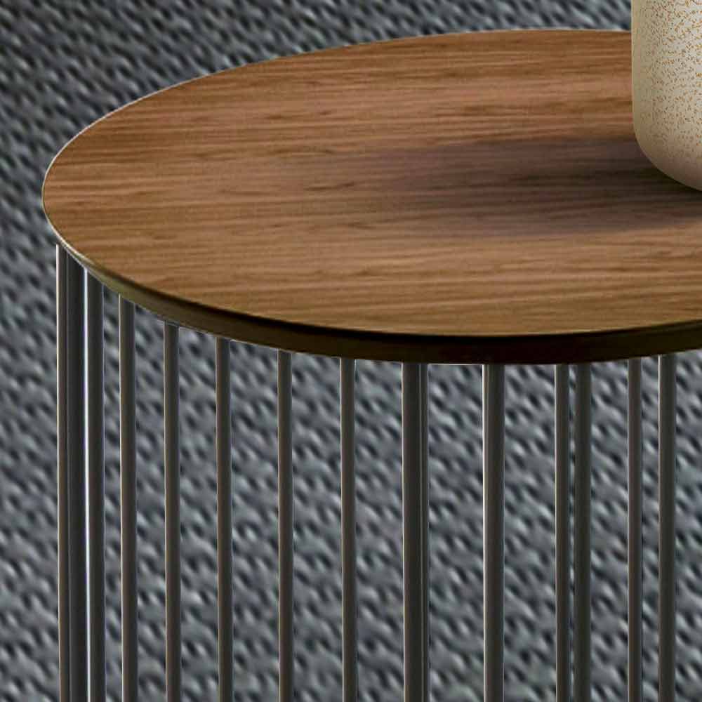 طاولة قهوة ذات سطح خشبي دائري وقاعدة معدنية صنع في إيطاليا.