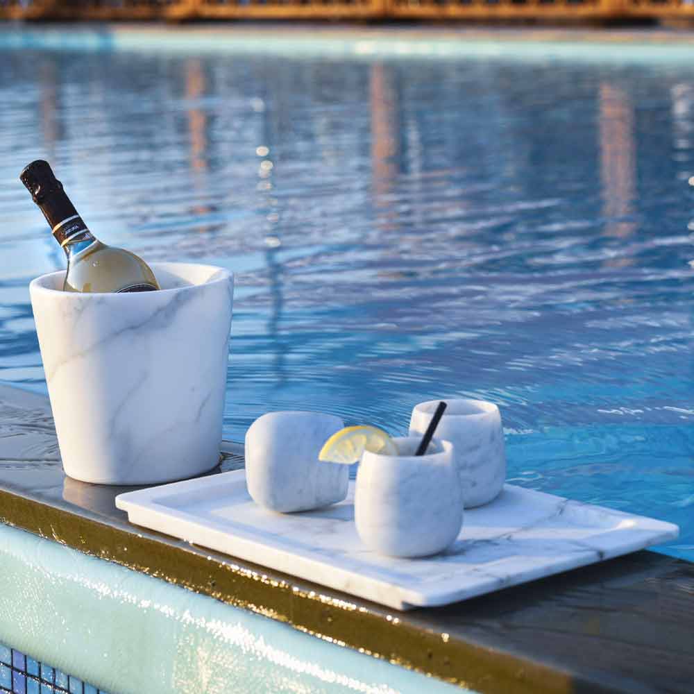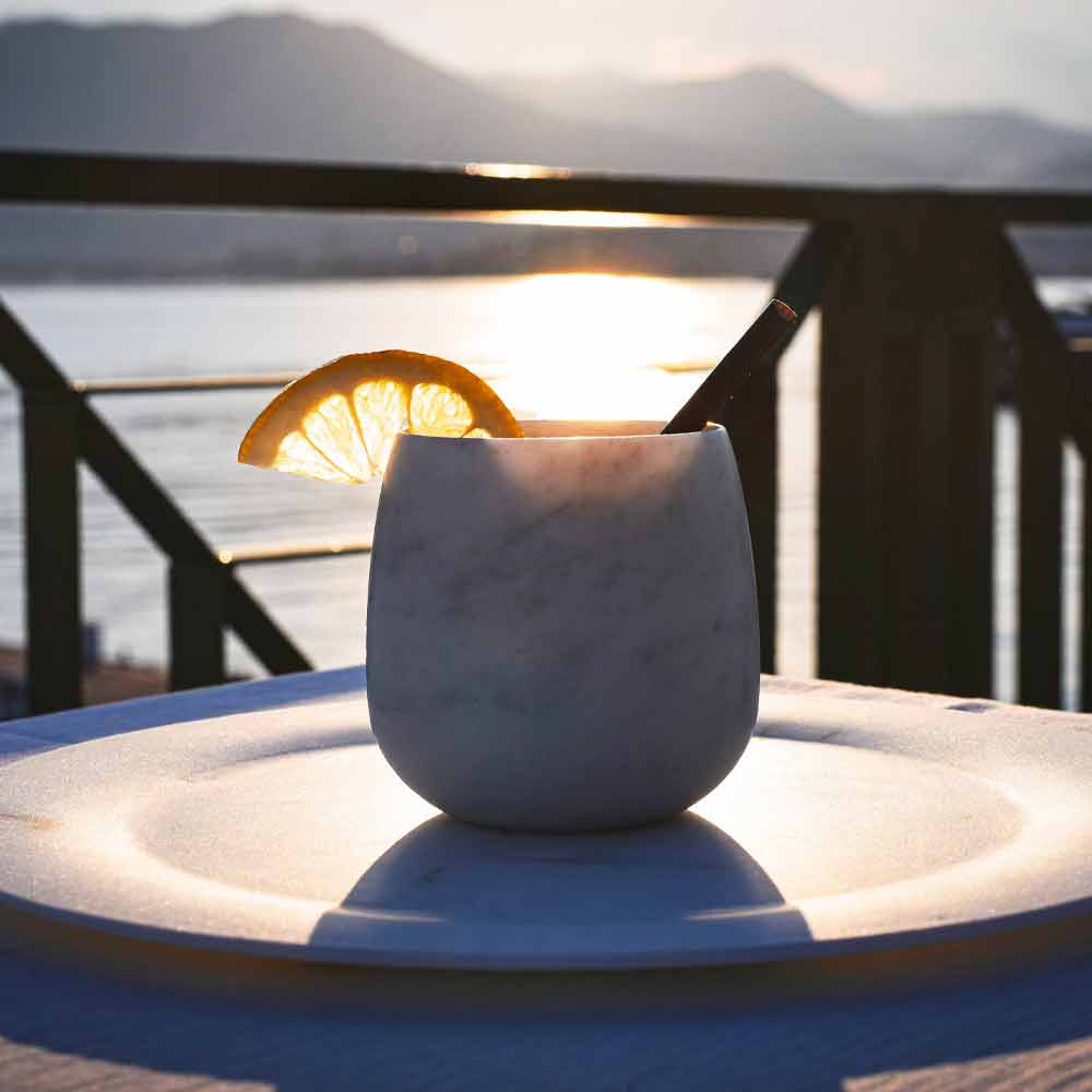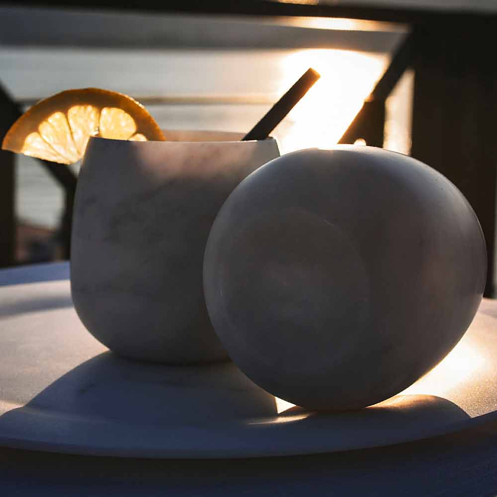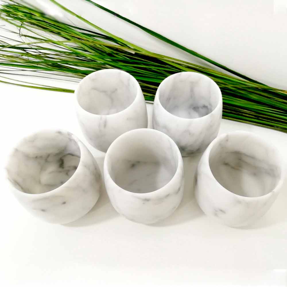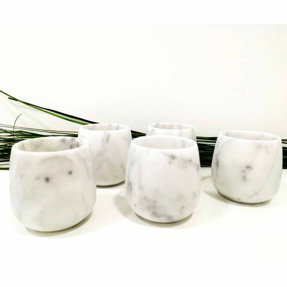 تركيبة مكونة من كأسين مصممين من رخام كارارا صنع في إيطاليا.