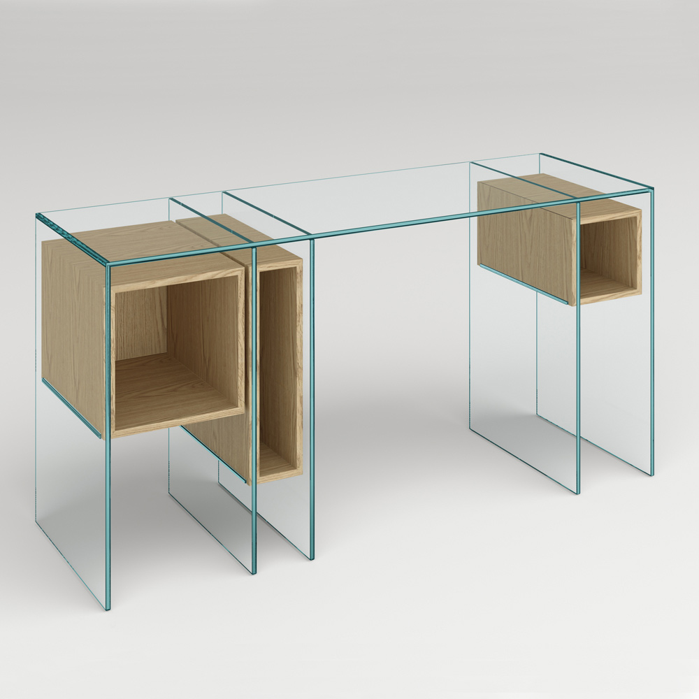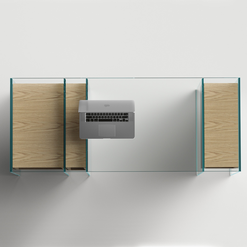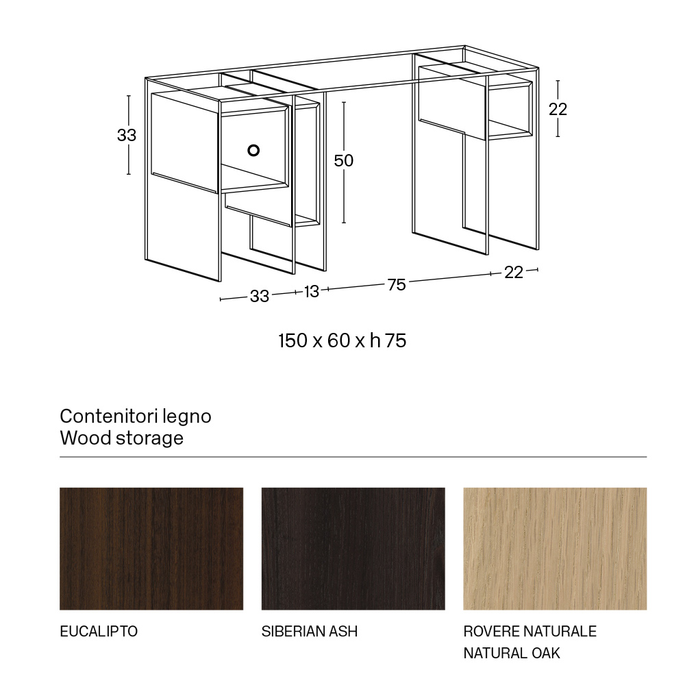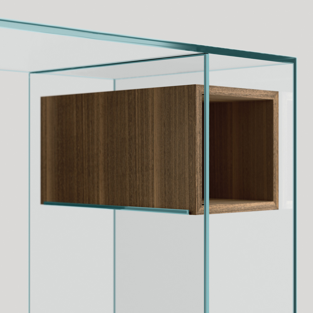 ملاحظة : تتوفر وحدة التحكم أيضًا بنسخة الزجاج المدخن. كما يُمكن طلب مجموعة الأدراج الثلاثة بلون مطابق (مُدمجة داخل المكعب الأيسر).