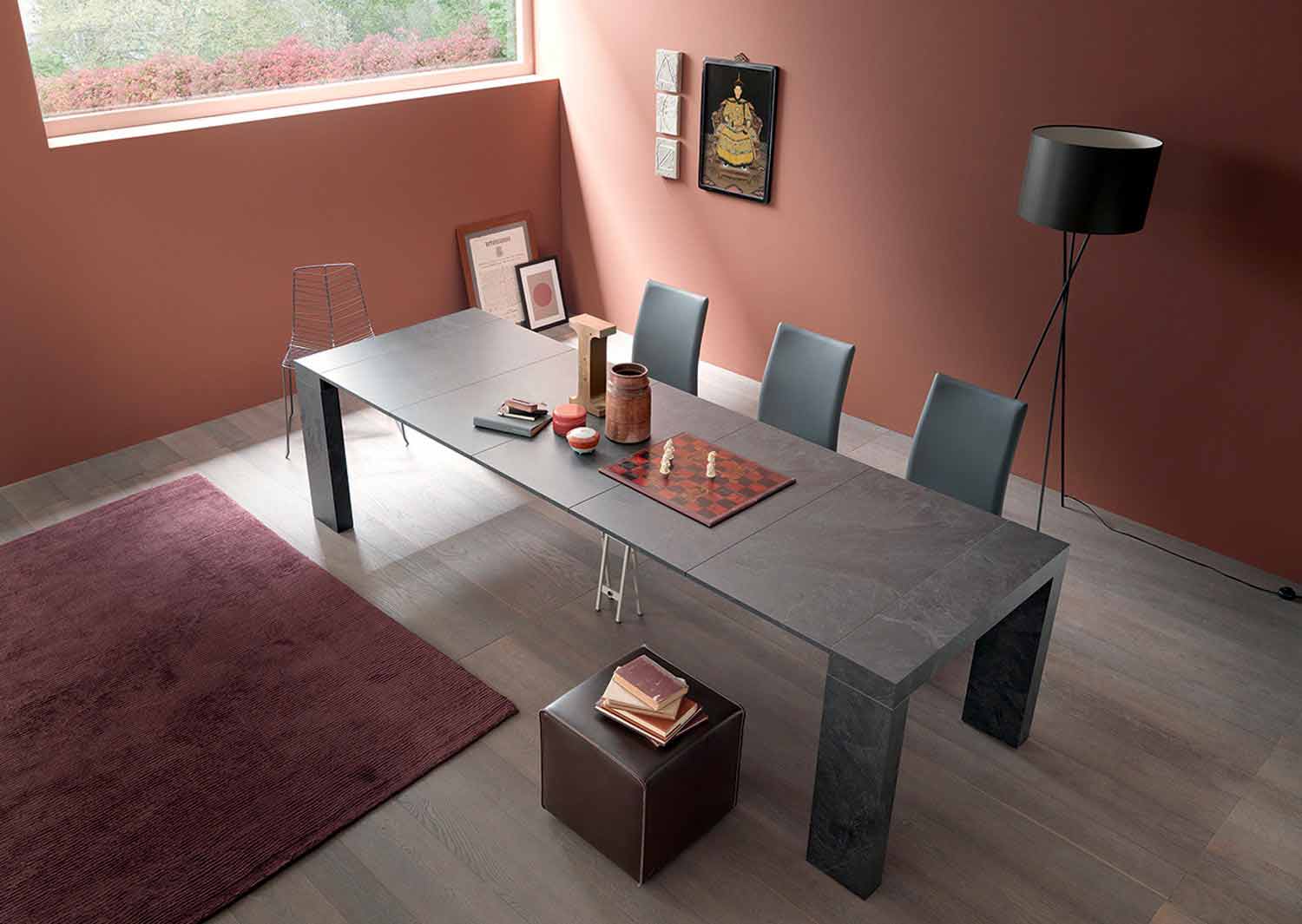 مصنوعة يدويًا في إيطاليا بمواد عالية الجودة ومصنوعة بنسبة 100% في إيطاليا. يتميز بوجود سطح قابل للتمدد مصنوع من خشب الميلامين وقاعدة متناسقة.